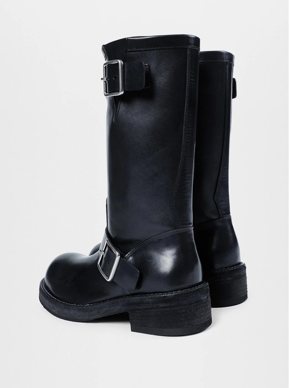 Stivali neri Sarith Engineer di Ann Demeulemeester in pelle con punta tonda e doppio cinturino con fibbie.
