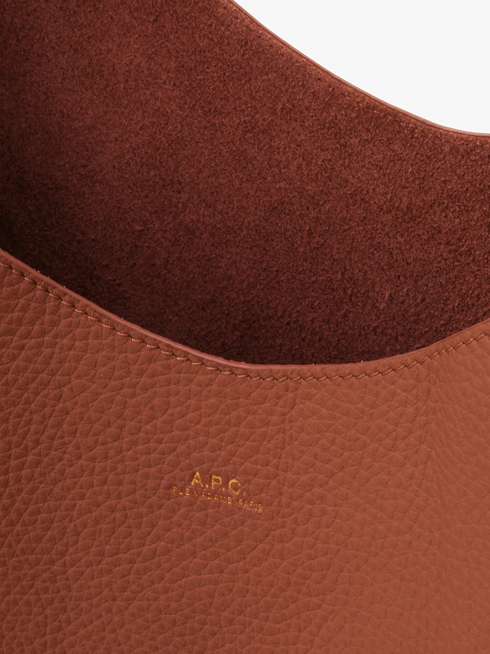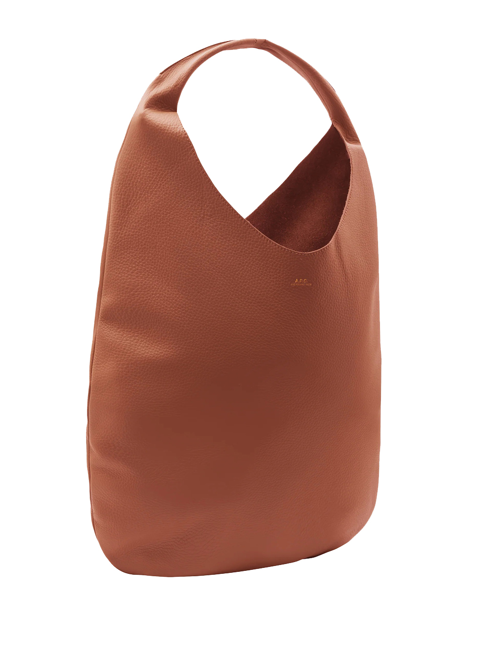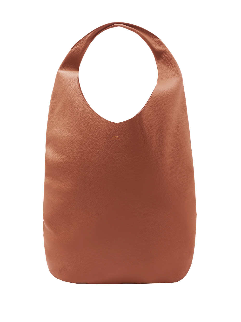 Borsa nocciola Le Neige di A.P.C. in poliuretano con manico unico e logo frontale.