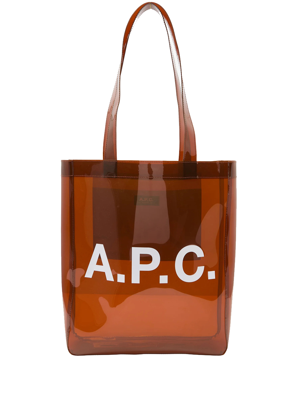 Borsa marrone Lou Tote di A.P.C. in poliuretano w manici, tasca interna e logo frontale.