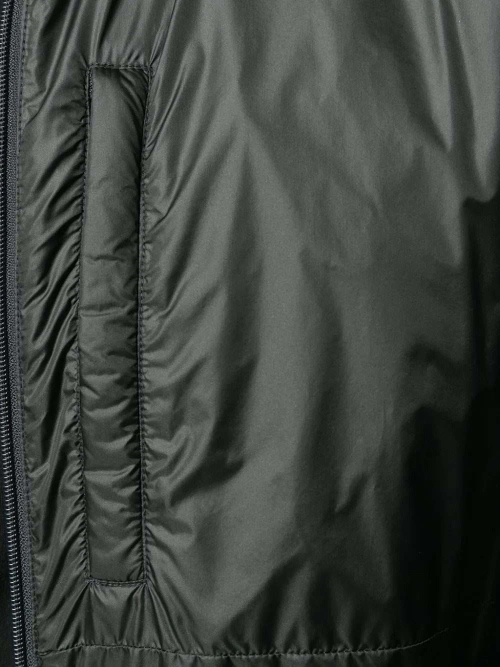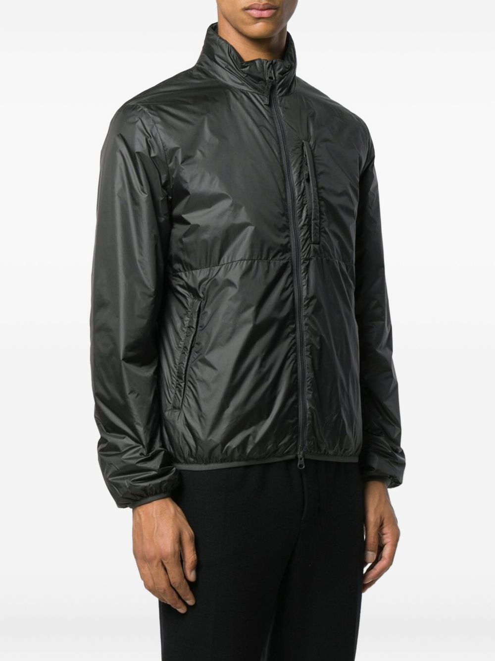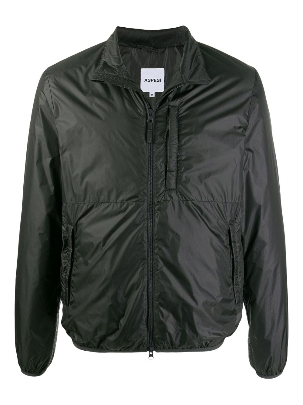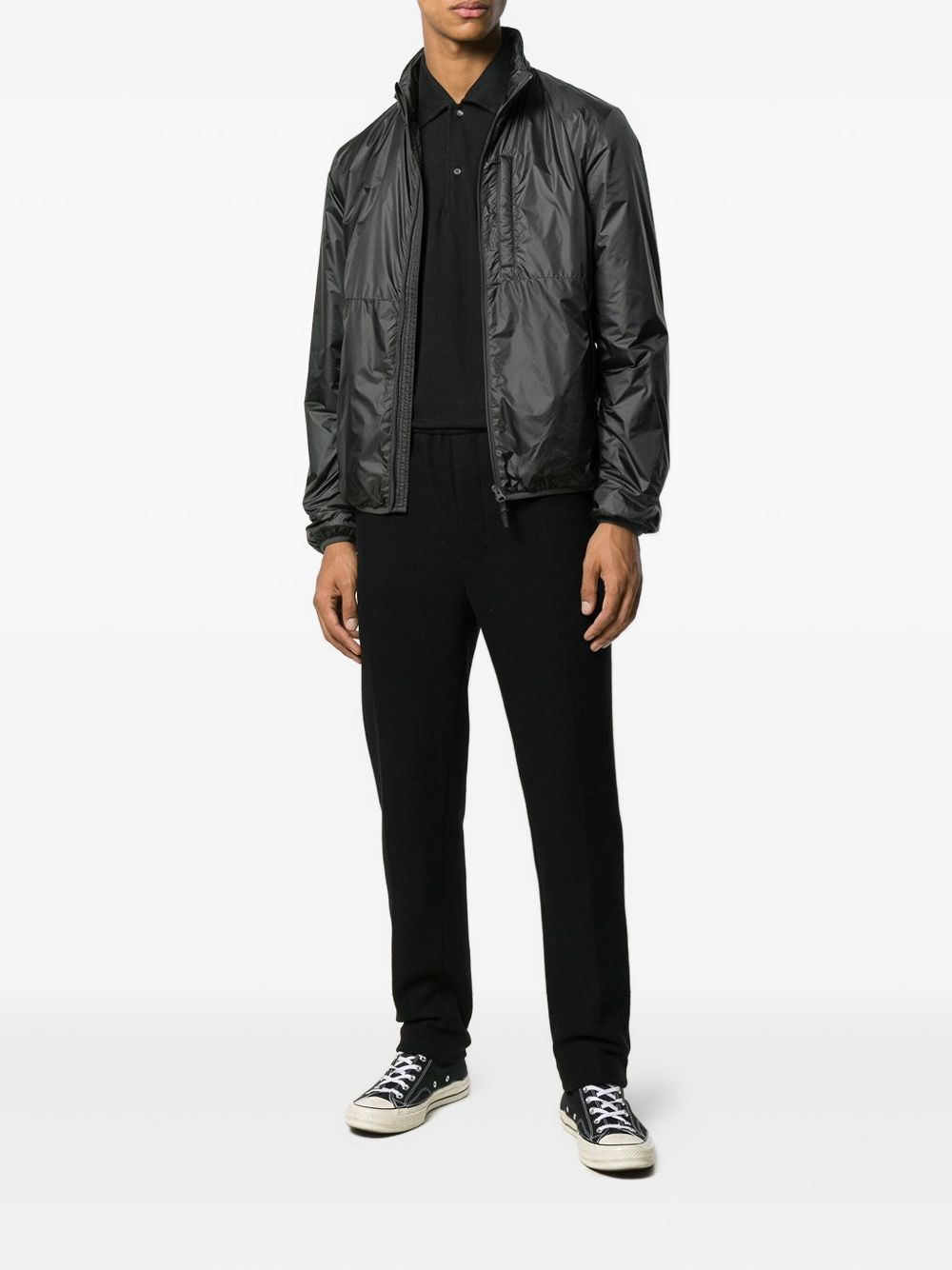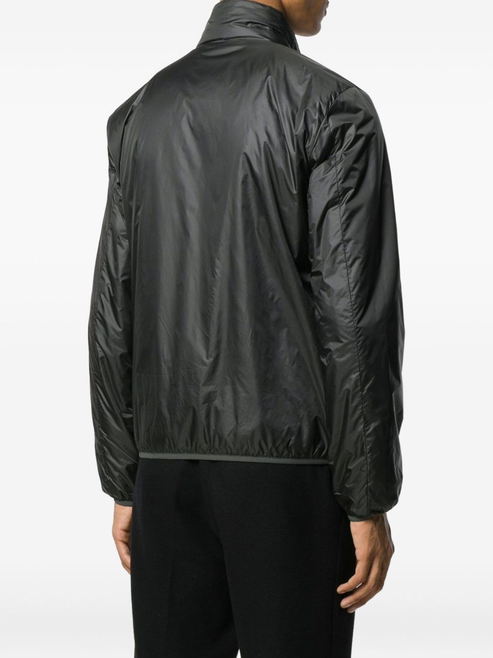 Giacca nera Jil Con di Aspesi in poliammide con colletto alzato, chiusura a zip con doppio cursore, taschino sul petto e tasche laterali.