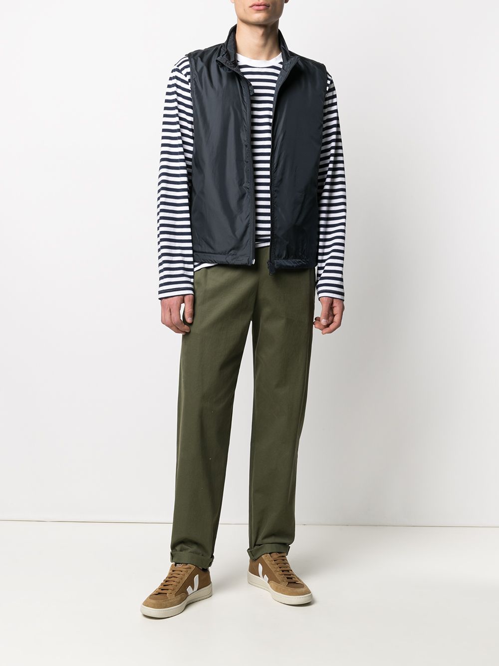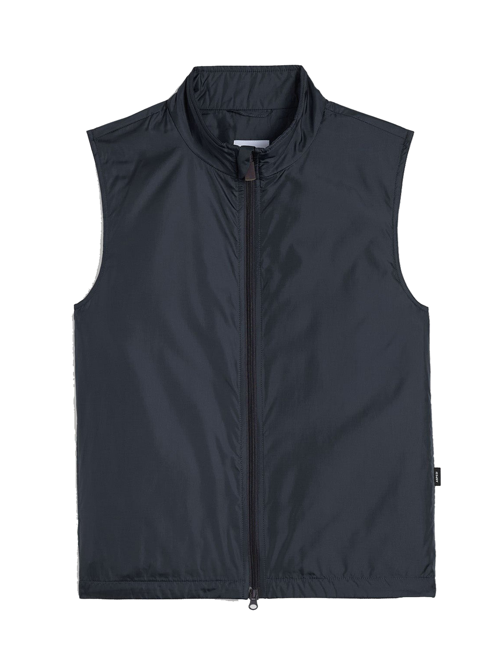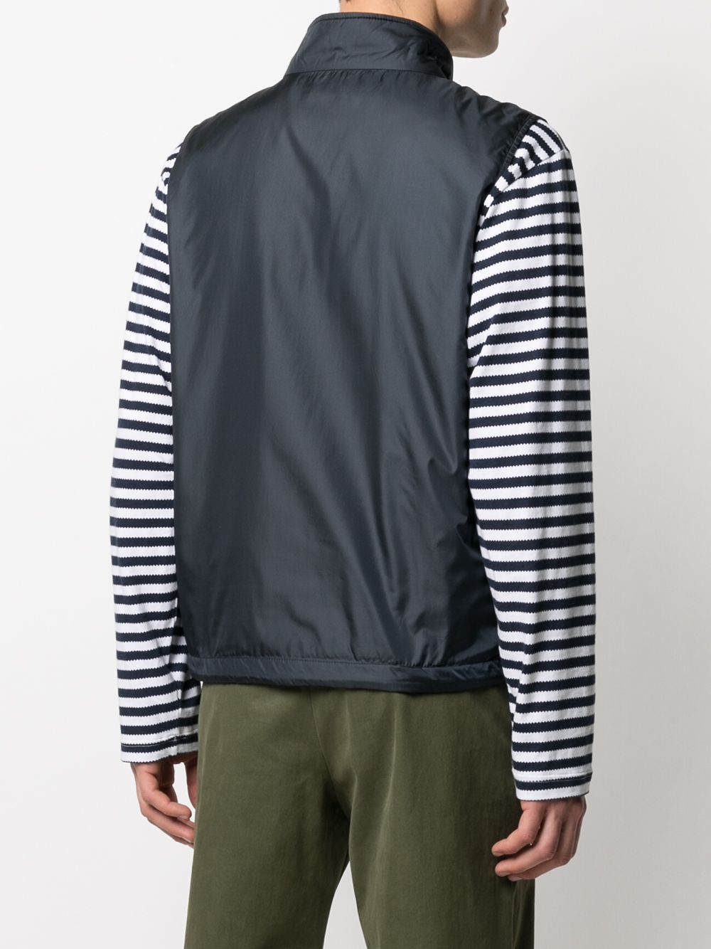 Gilet navy Vernes di Aspesi in nylon con collo alto, chiusura frontale con zip, senza maniche e orlo dritto