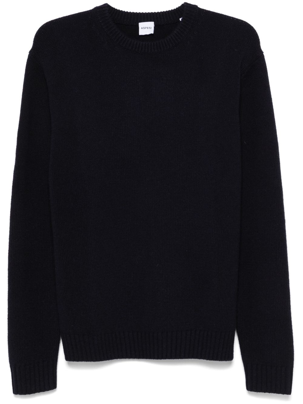 Maglione navy Mod. M 160 di Aspesi in lana con con girocollo, maniche lunghe, orlo e polsini a coste.