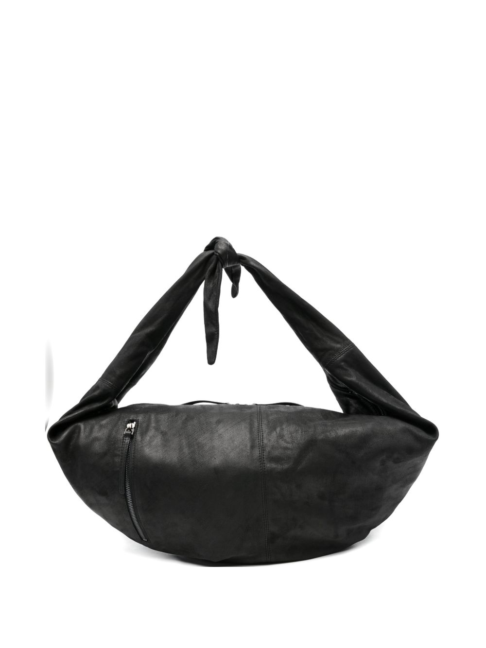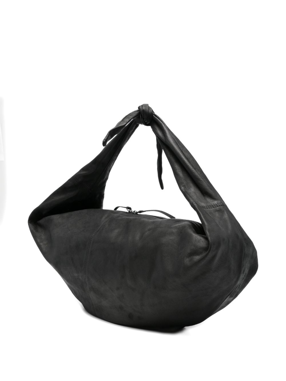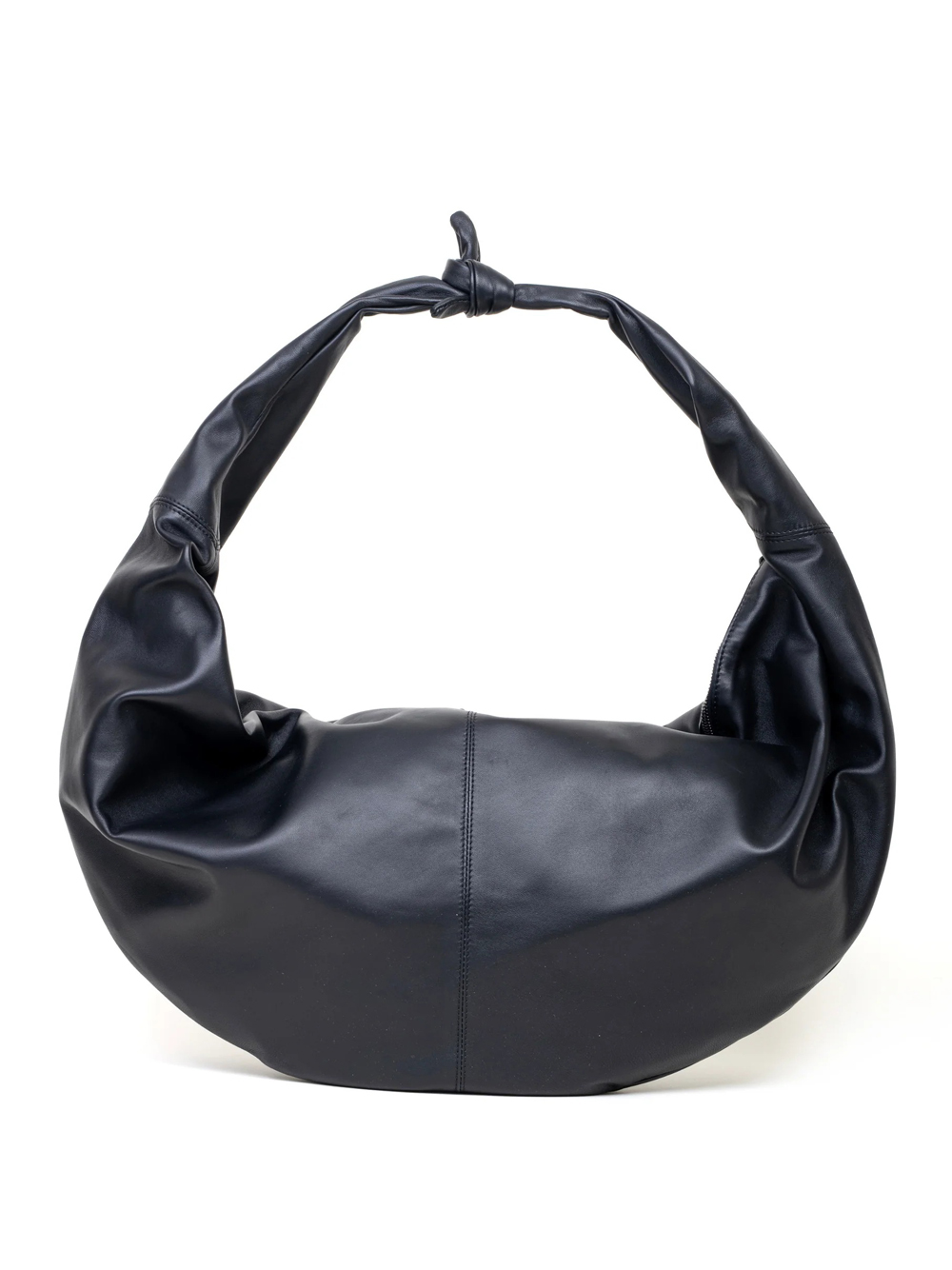 Borsa nera Adara L di Autentica 504 in pelle con nodo centrale, chiusura con zip e tasca esterna.