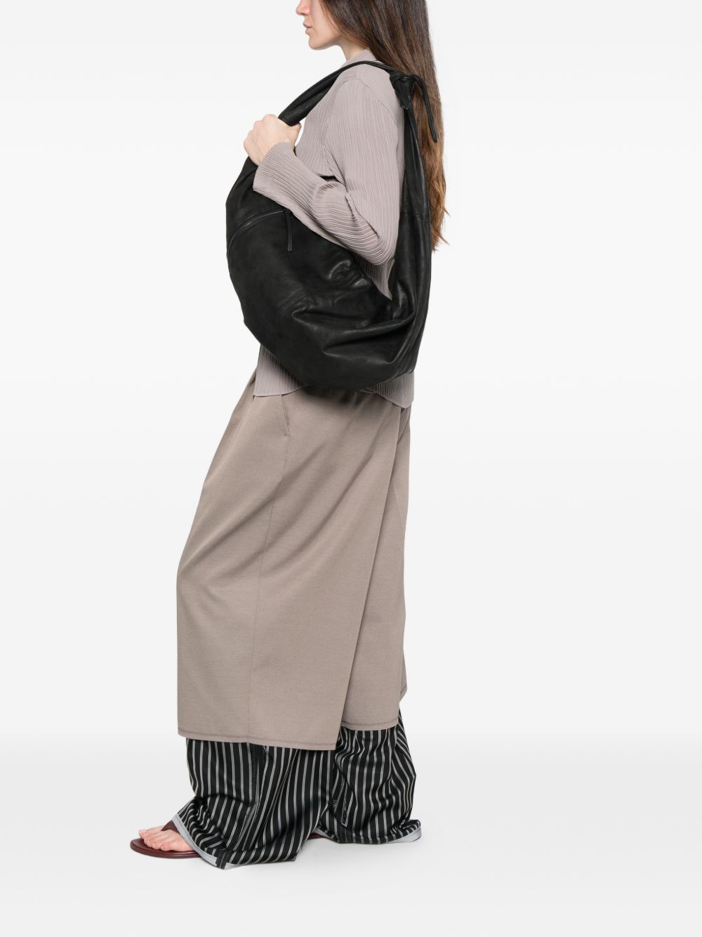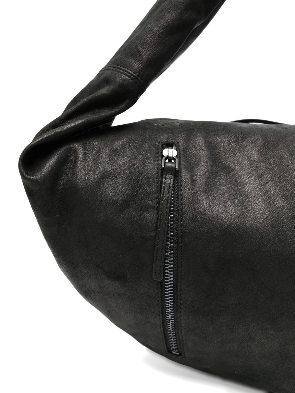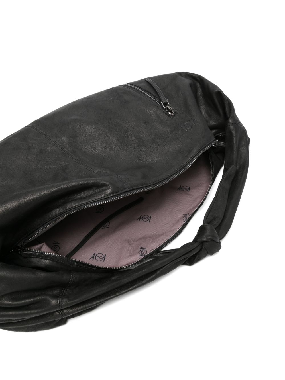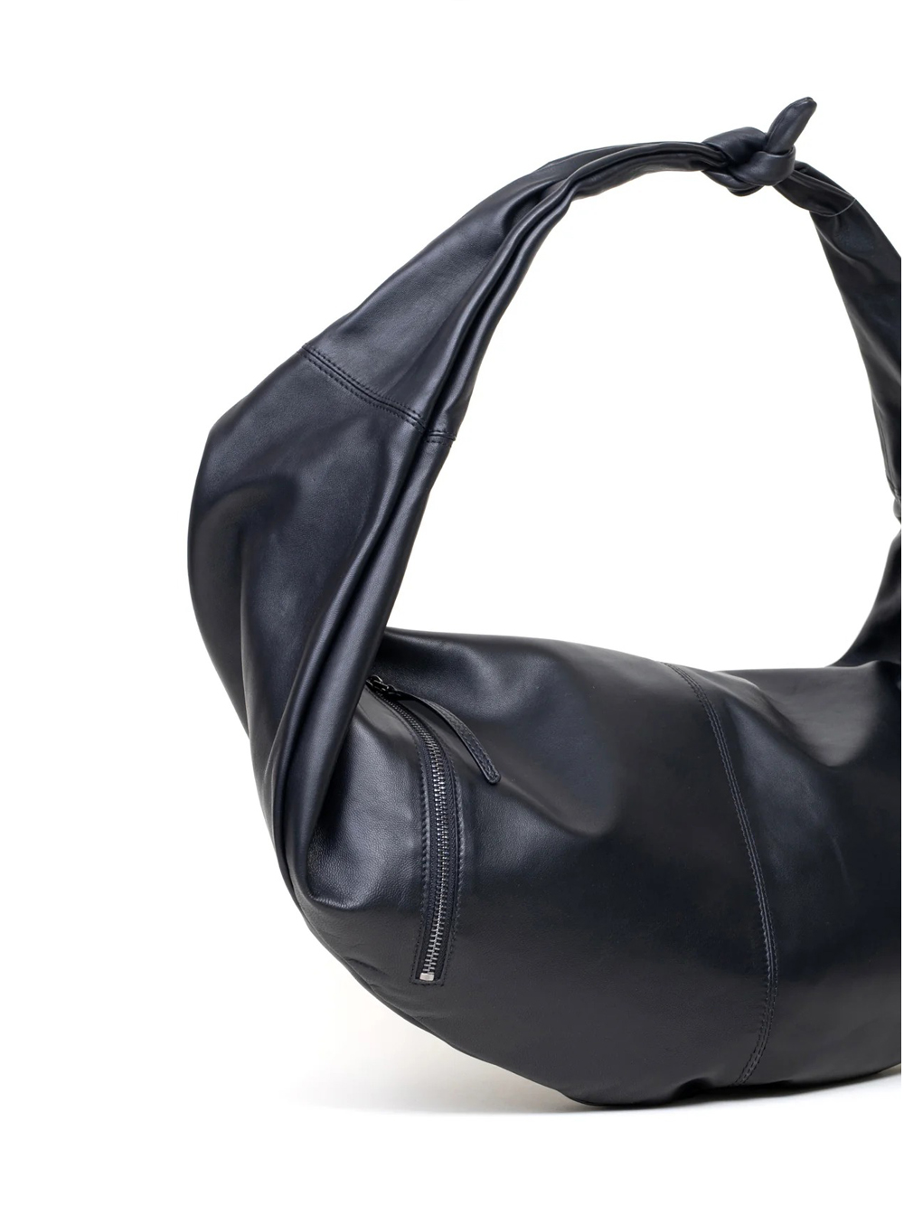 Borsa nera Adara L di Autentica 504 in pelle con nodo centrale, chiusura con zip e tasca esterna.