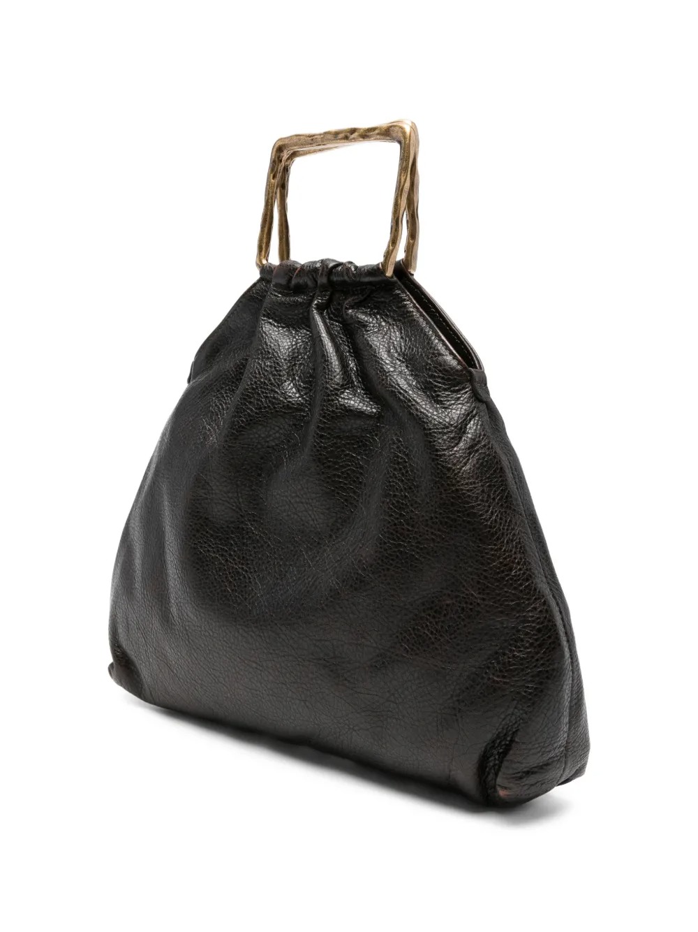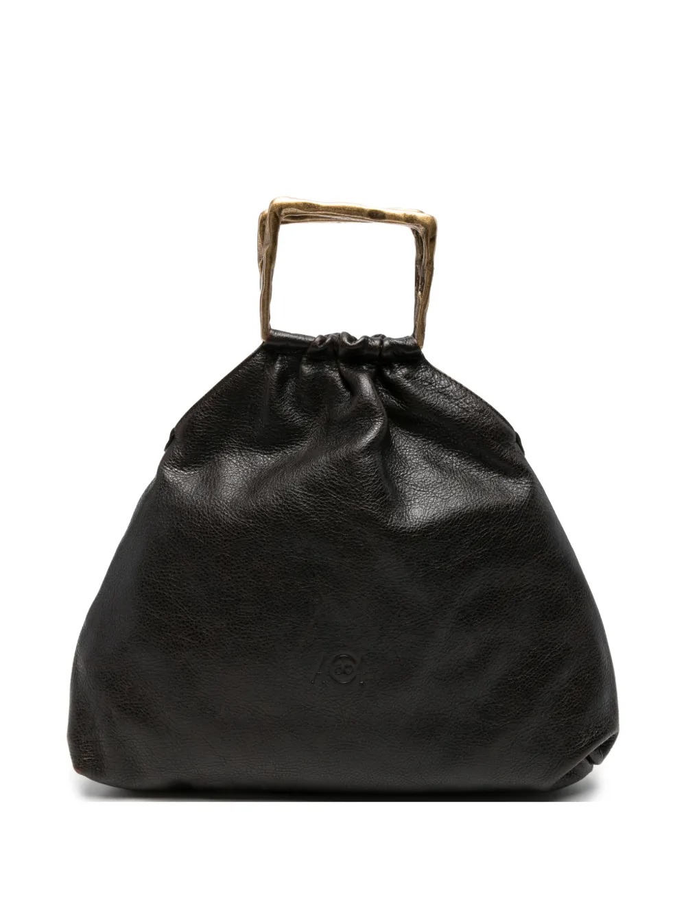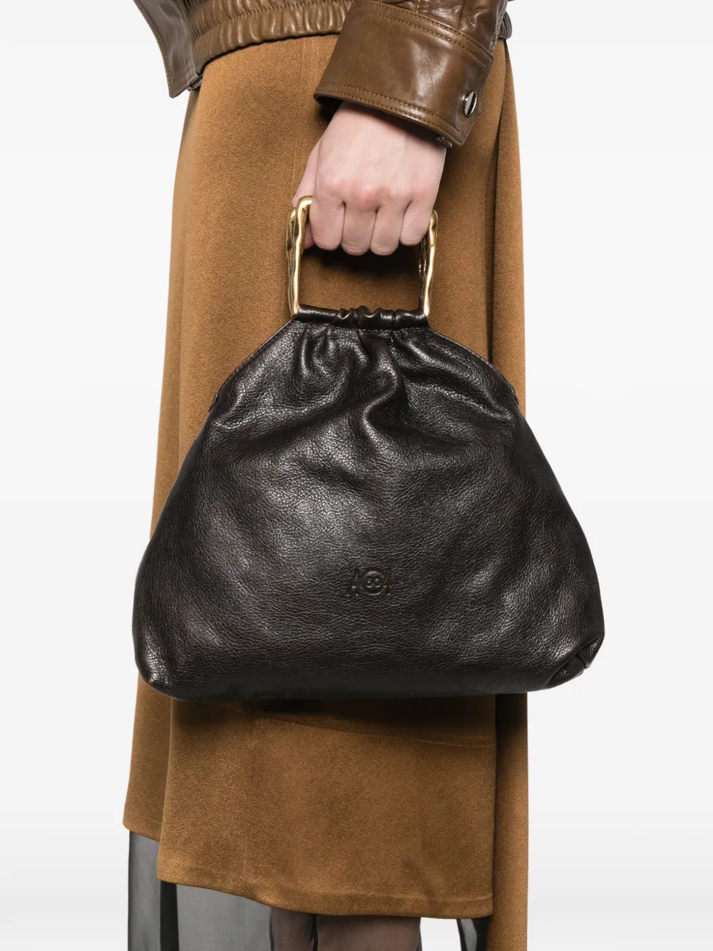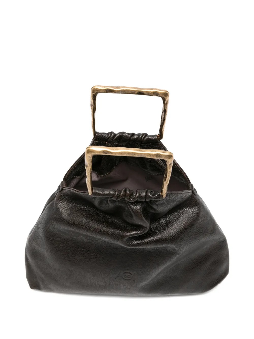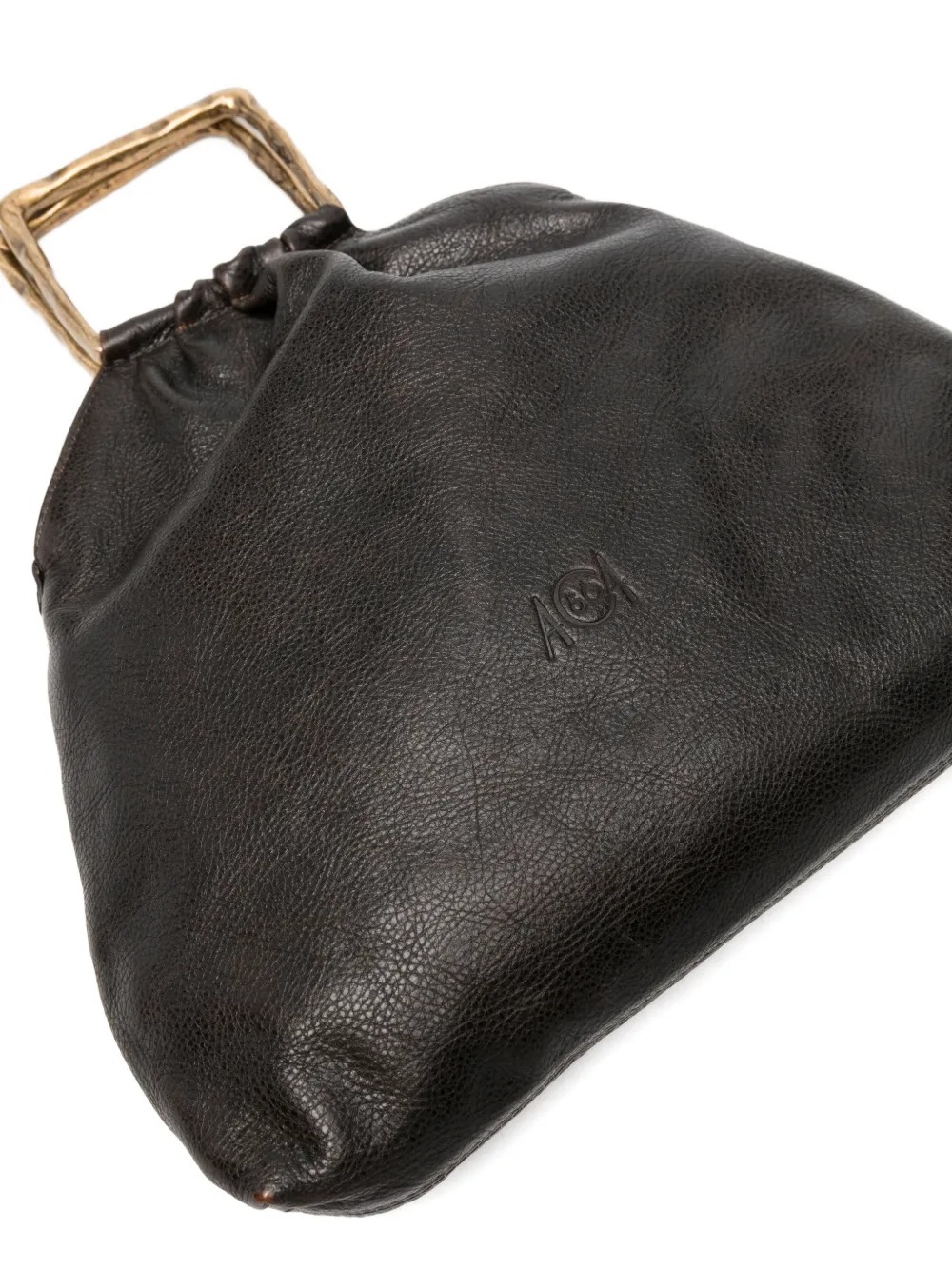 Borsa marrone Delia Pouch di Autentica 504 in pelle con manico quadrato e logo goffrato.