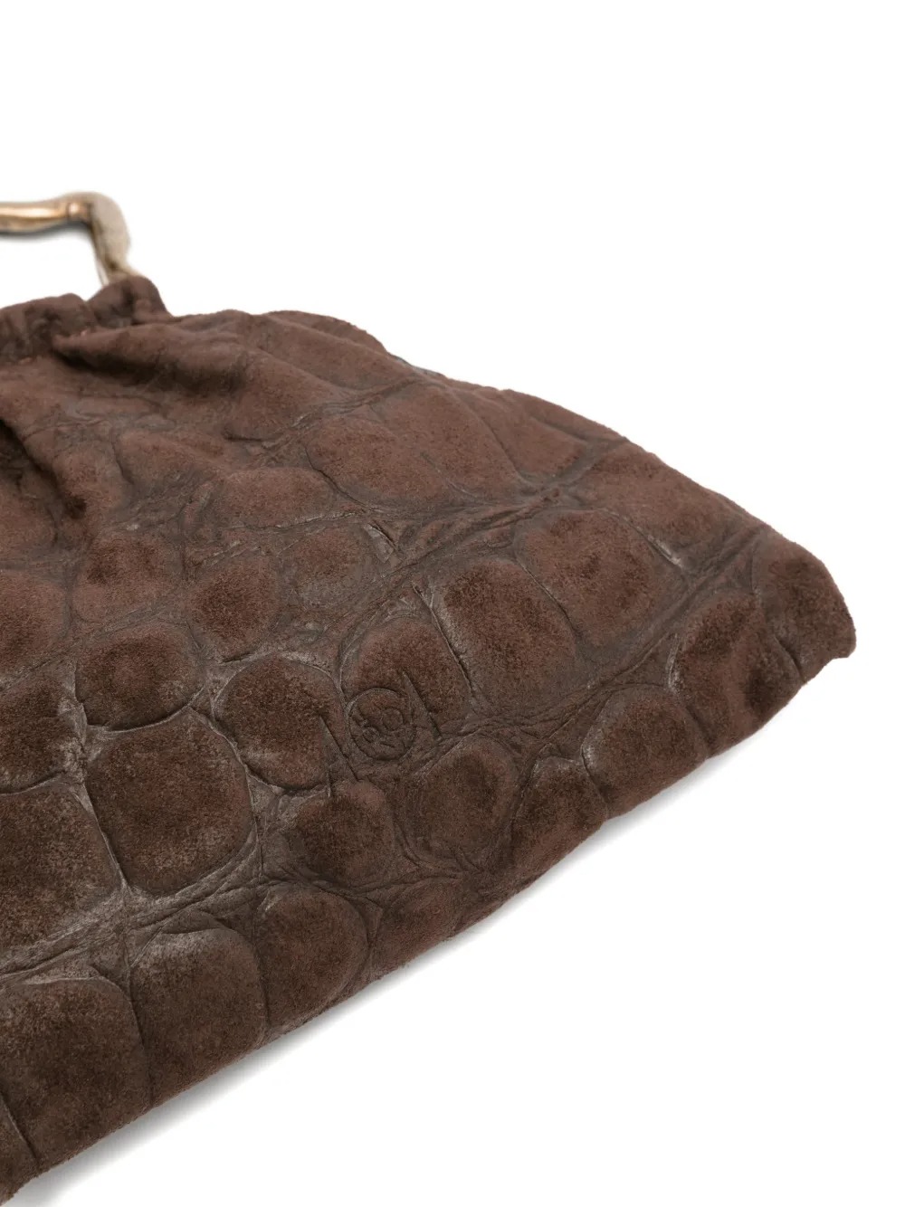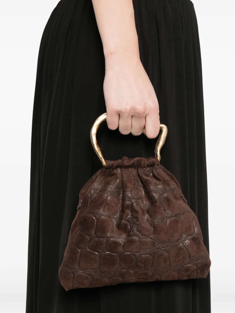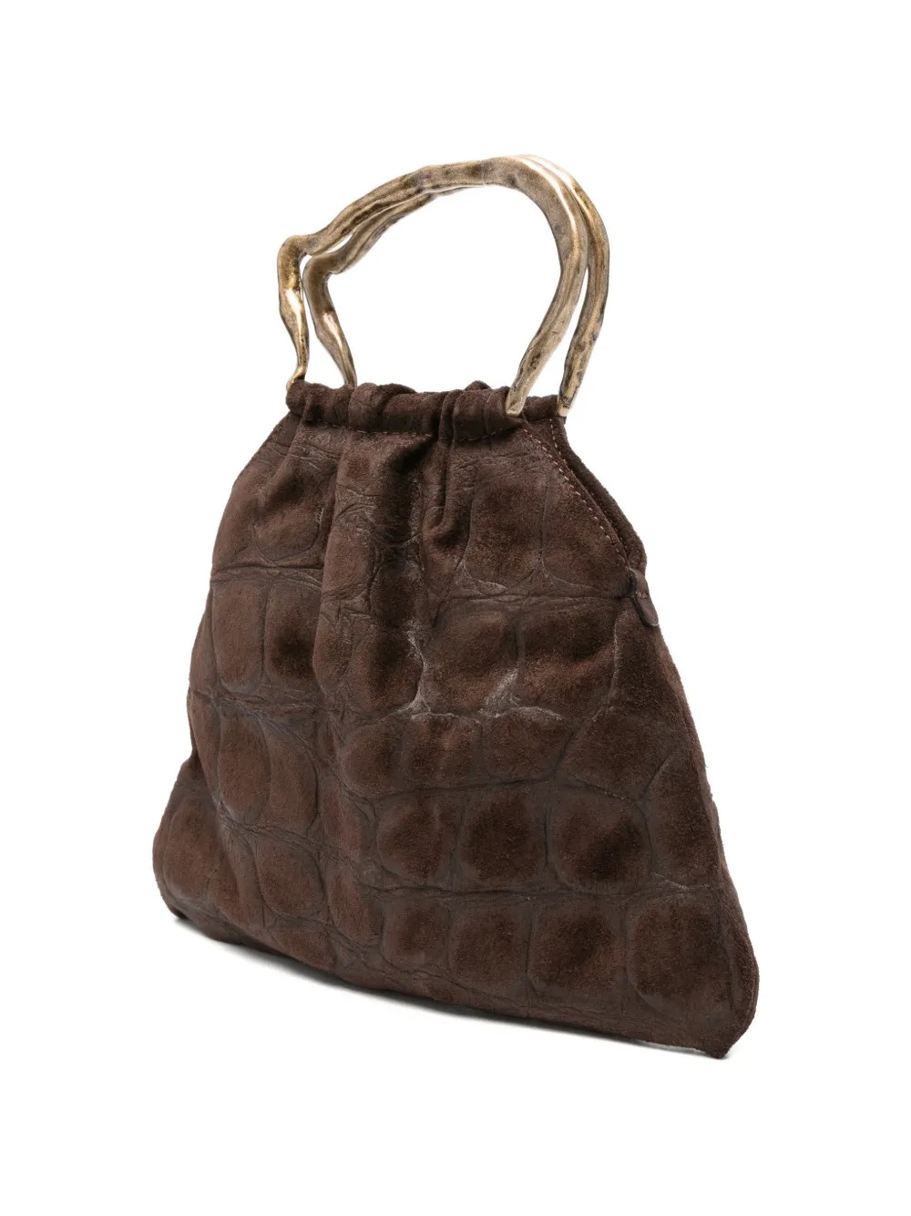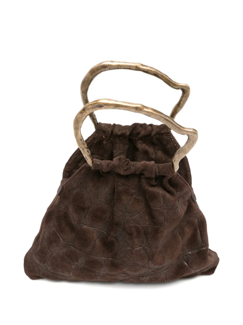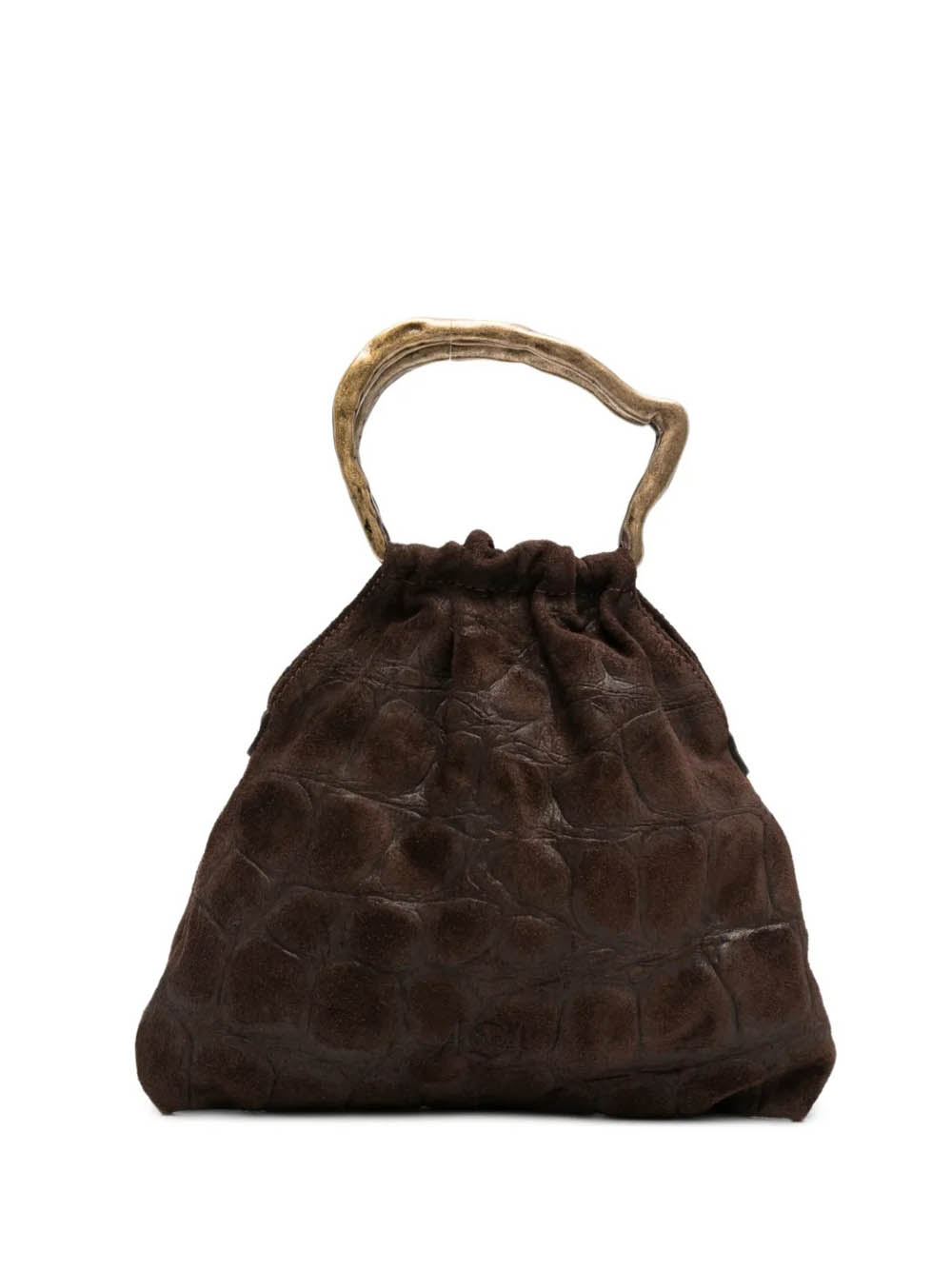 Borsa marrone Delia Pouch di Autentica 504 in pelle con manico quadrato e logo goffrato.
