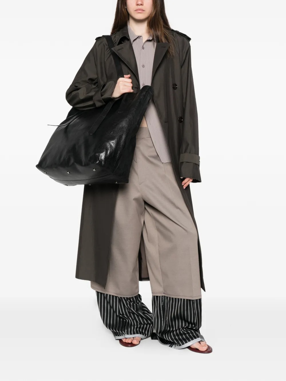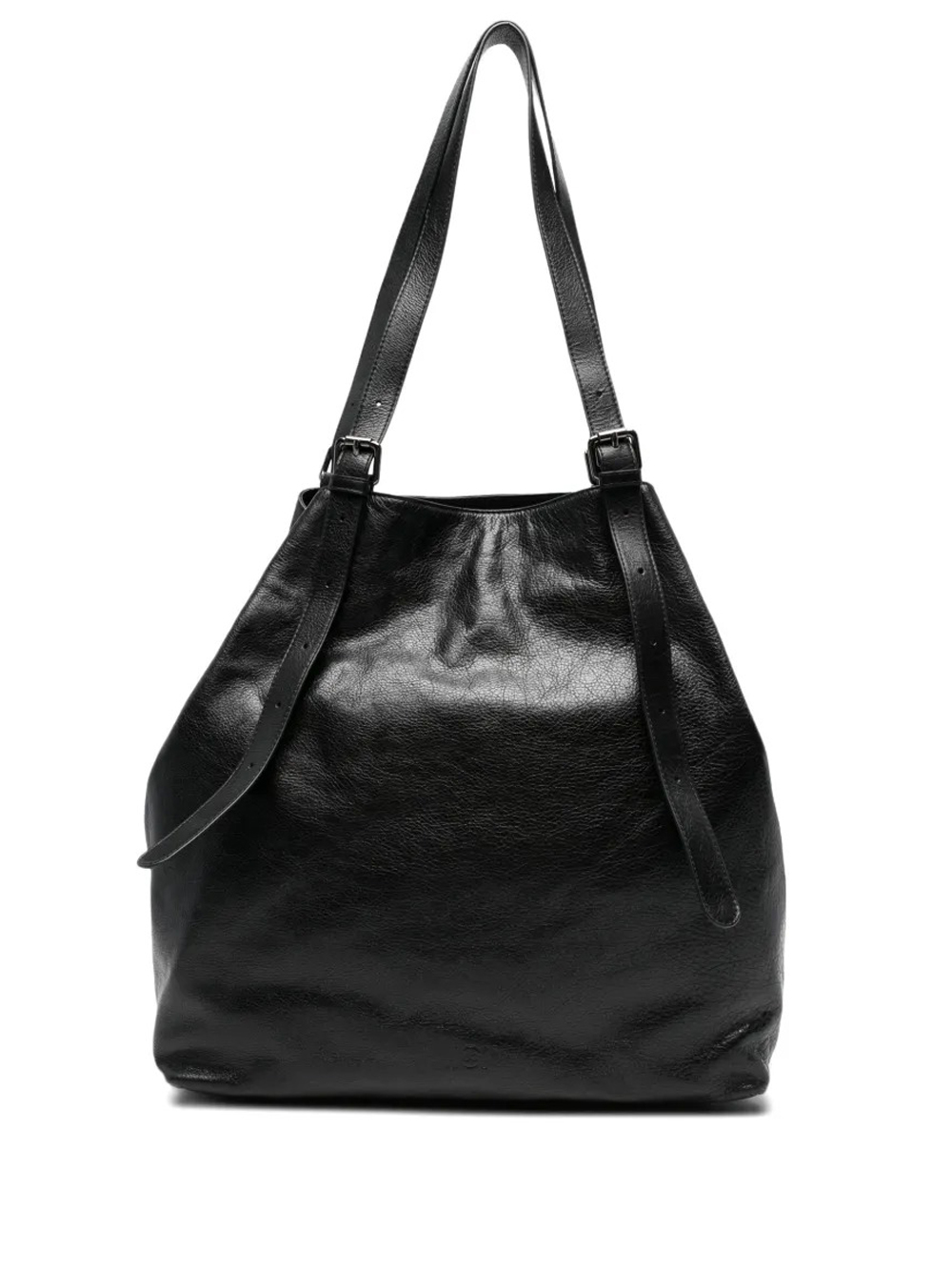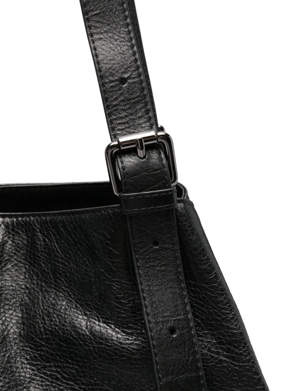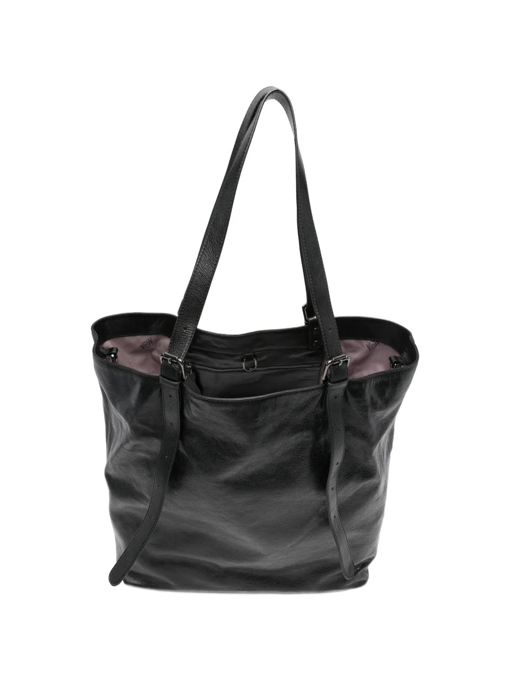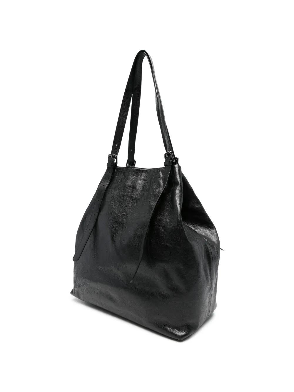 Borsa nera Galatea L di Autentica 504 in pelle con cinturino, spallacci regolabili, manico, tasca interna con zip e dettaglio fibbia.