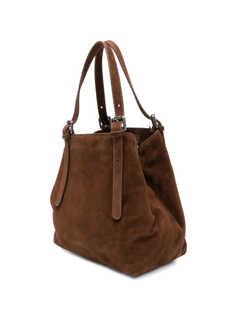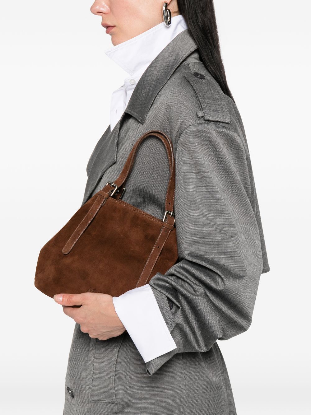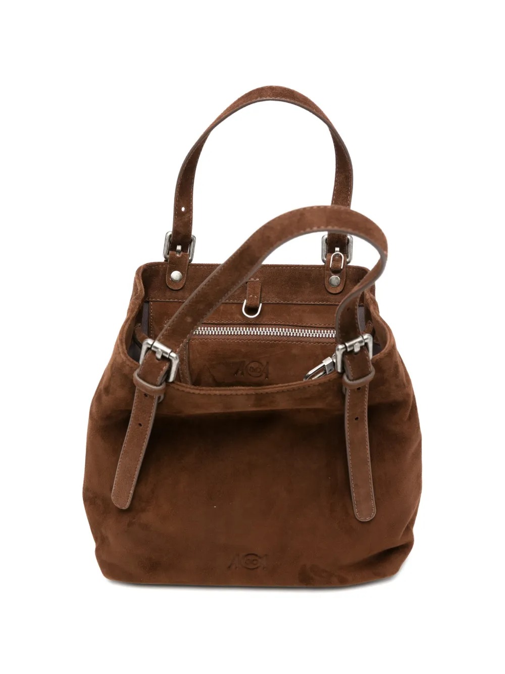 Borsa marrone Galatea S di Autentica 504 in pelle con cinturino, spallacci regolabili, manico, tasca interna con zip e dettaglio fibbia.