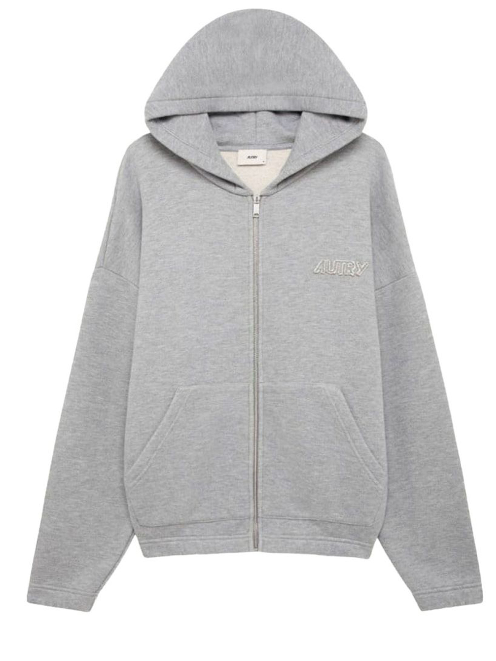 Felpa grigio di Autry in cotone con cappuccio con coulisse, chiusura frontale con zip, maniche lunghe e orlo e polsini a coste.