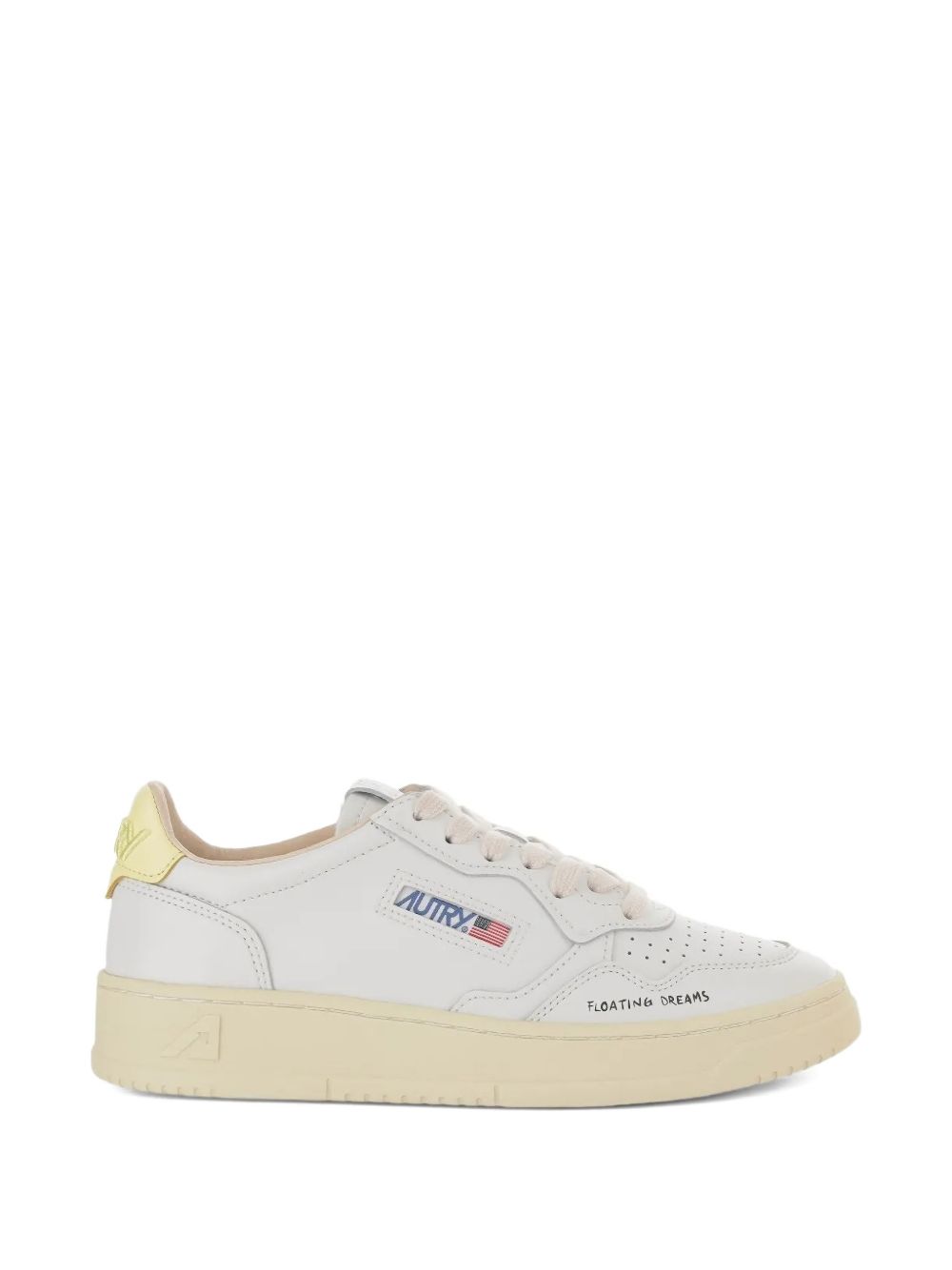Sneakers bianche Medalist Low Aulw DL02 di Autry in pelle con punta tonda, design traforato, chiusura con lacci, etichetta con logo e suola in gomma.