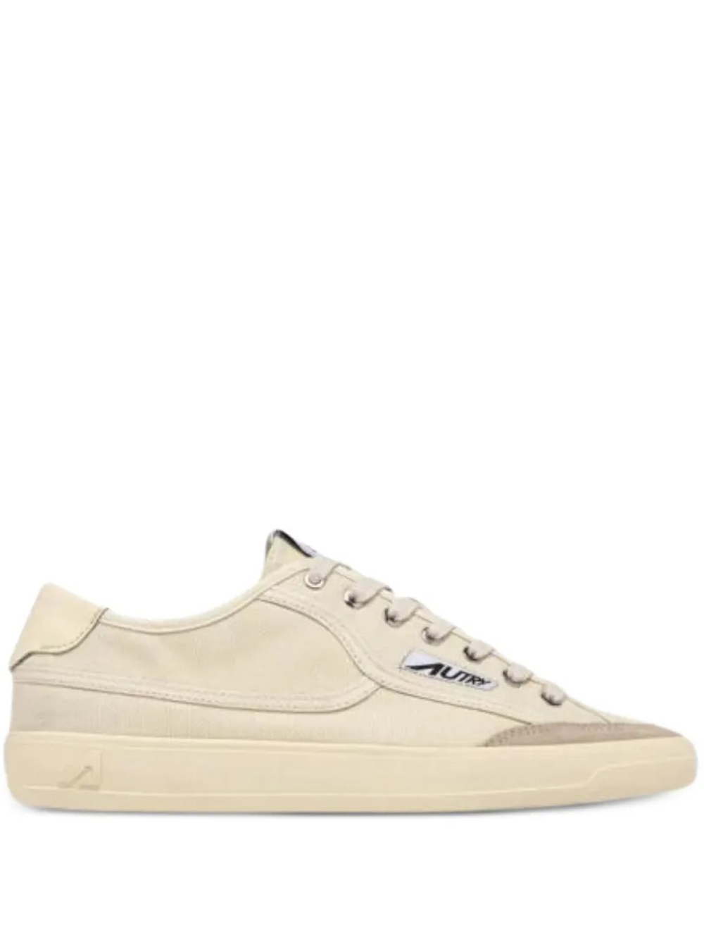 Sneakers crema Windscape di Autry in pelle e tela con linguetta sul tallone in pelle nera, inserti in pelle scamosciata, toppa con logo, punta arrotondata.