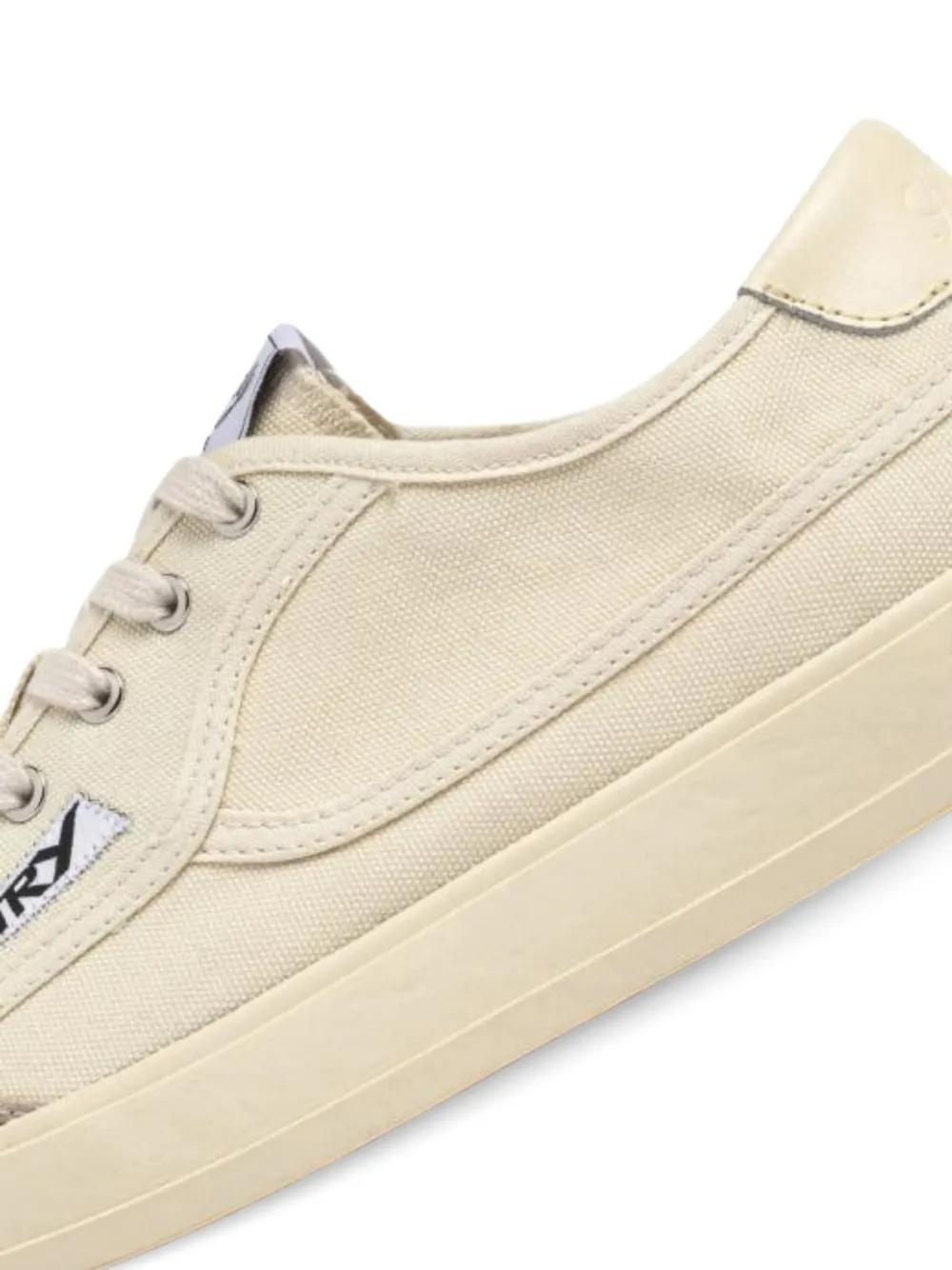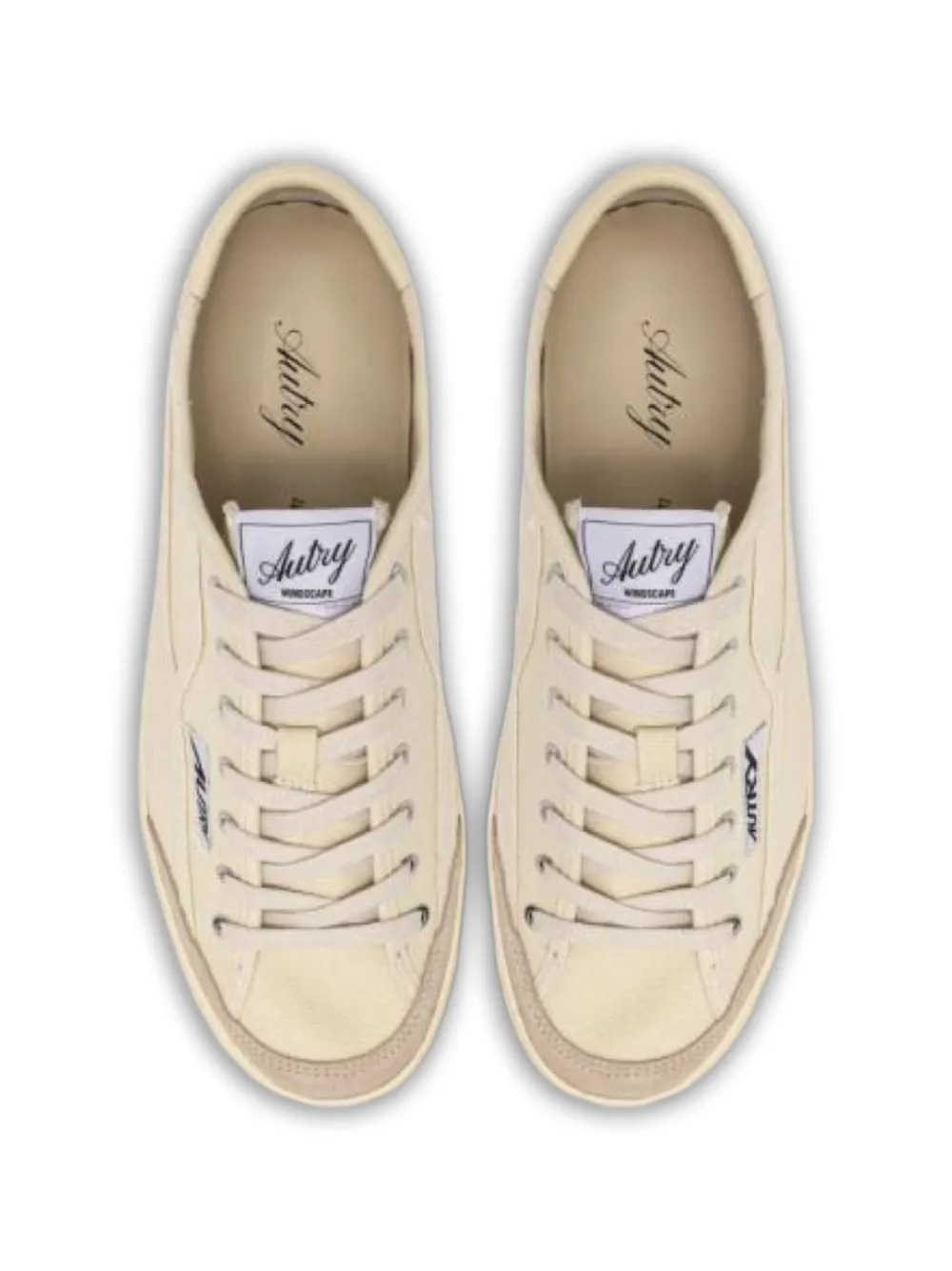Sneakers crema Windscape di Autry in pelle e tela con linguetta sul tallone in pelle nera, inserti in pelle scamosciata, toppa con logo, punta arrotondata.