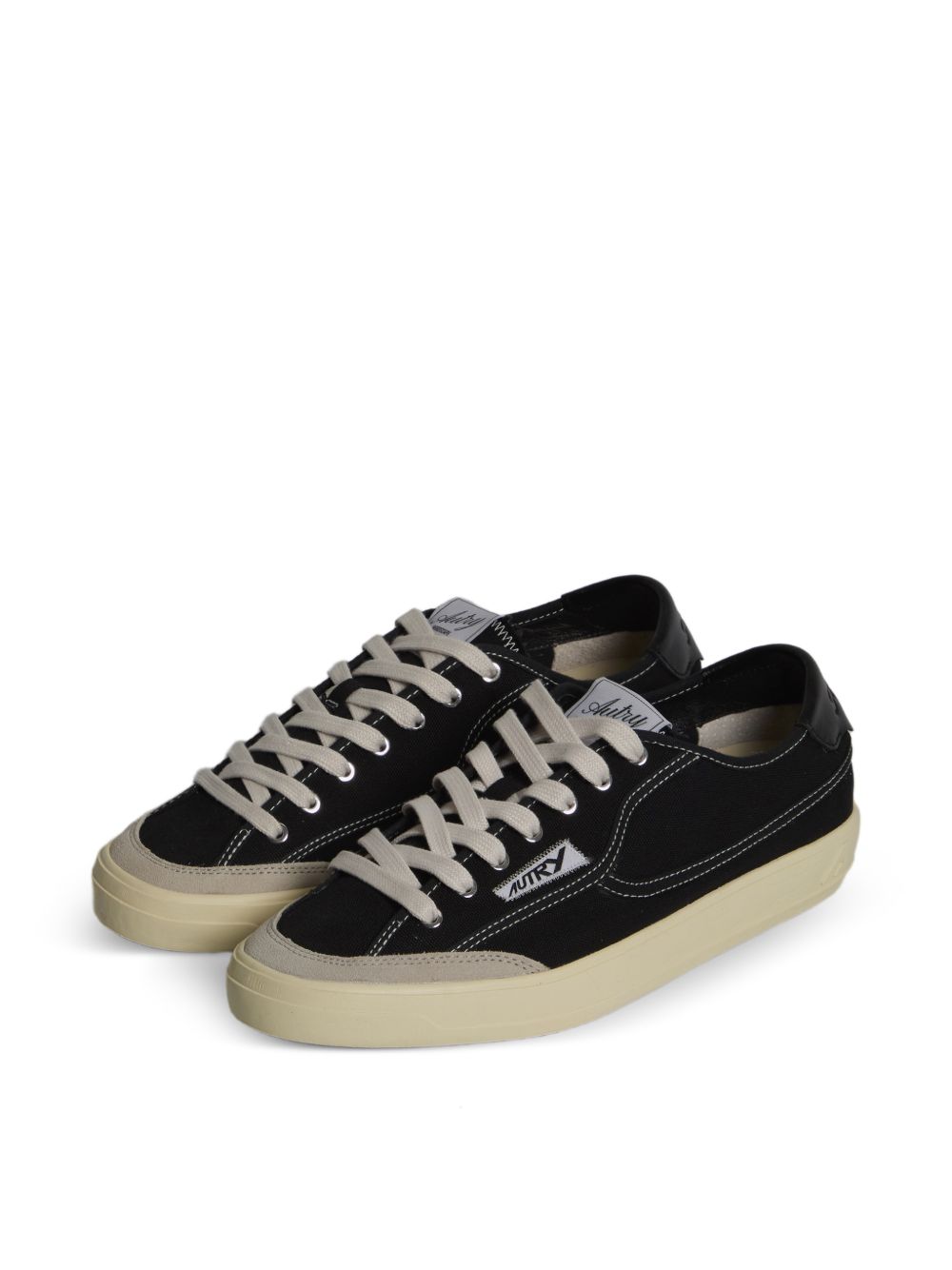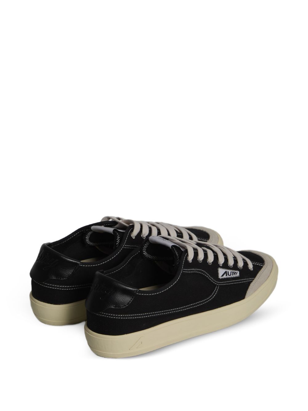 Sneakers nere Windscape di Autry in pelle e tela con linguetta sul tallone in pelle nera, inserti in pelle scamosciata, toppa con logo, punta arrotondata.