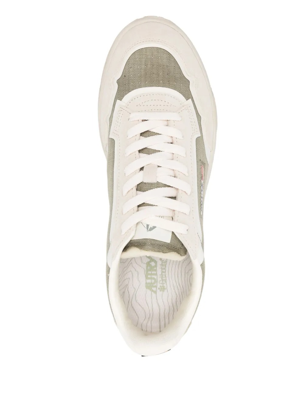 Sneakers bianche e beige Wildspice di Autry in pelle con punta tonda, design traforato, chiusura con lacci, etichetta con logo e suola in gomma.