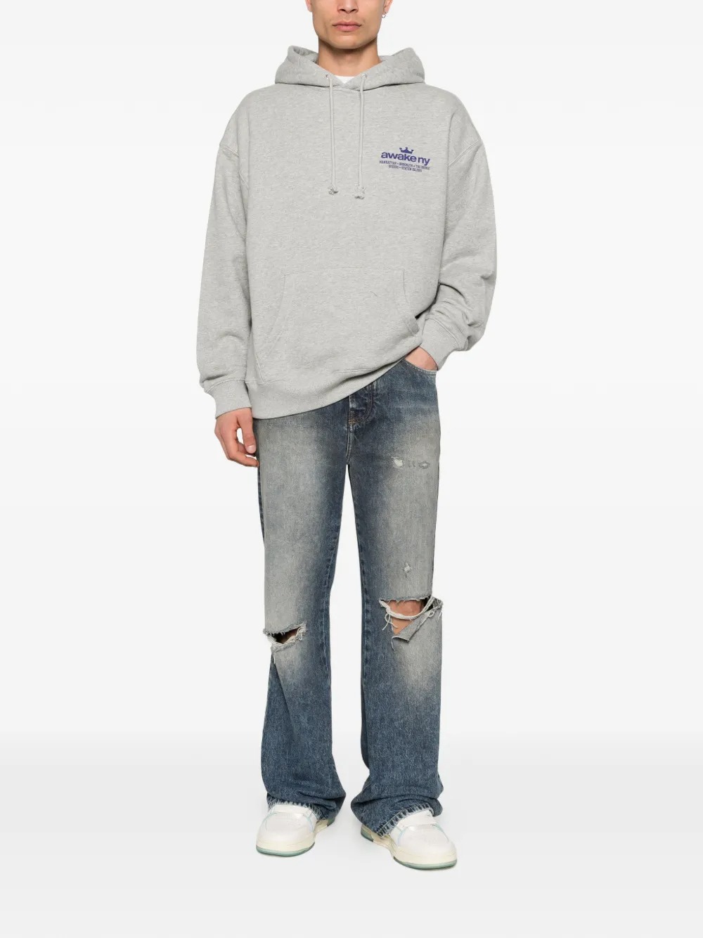 Felpa grigia Good Everywhere di Awake NY in cotone con cappuccio con coulisse, tasca frontale e orlo e polsini a coste.