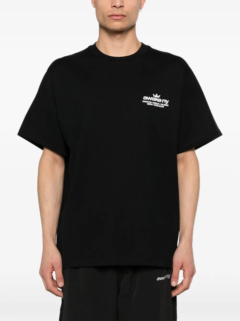 T-shirt nera Good Everywhere di Awake NY in cotone con stampa con logo, girocollo, maniche corte e orlo dritto.