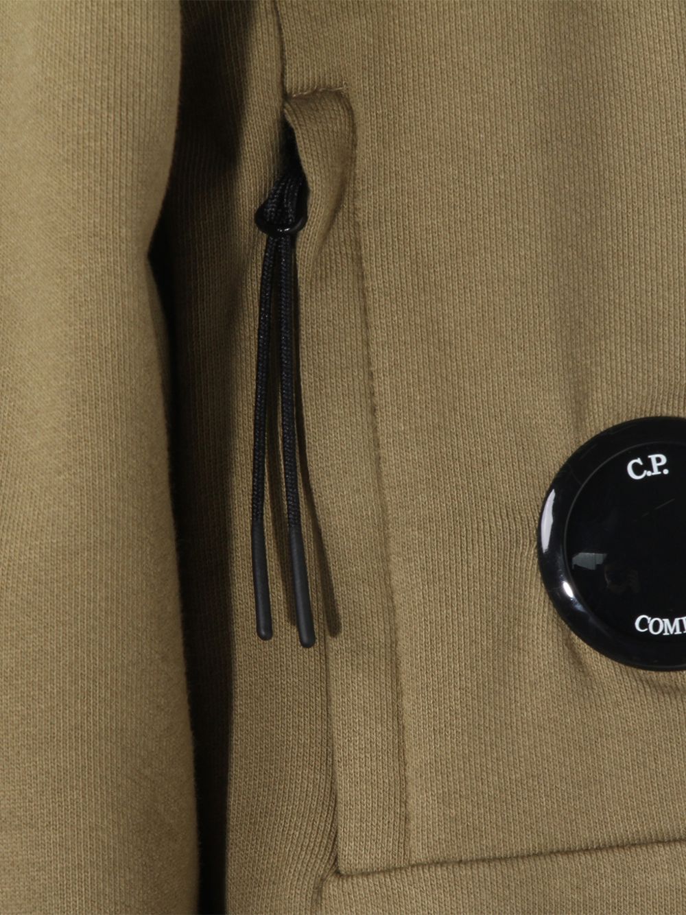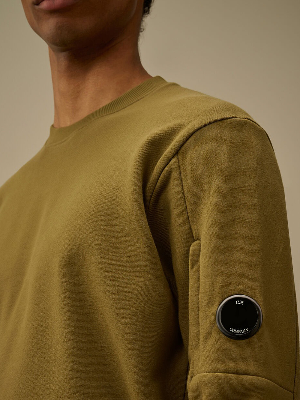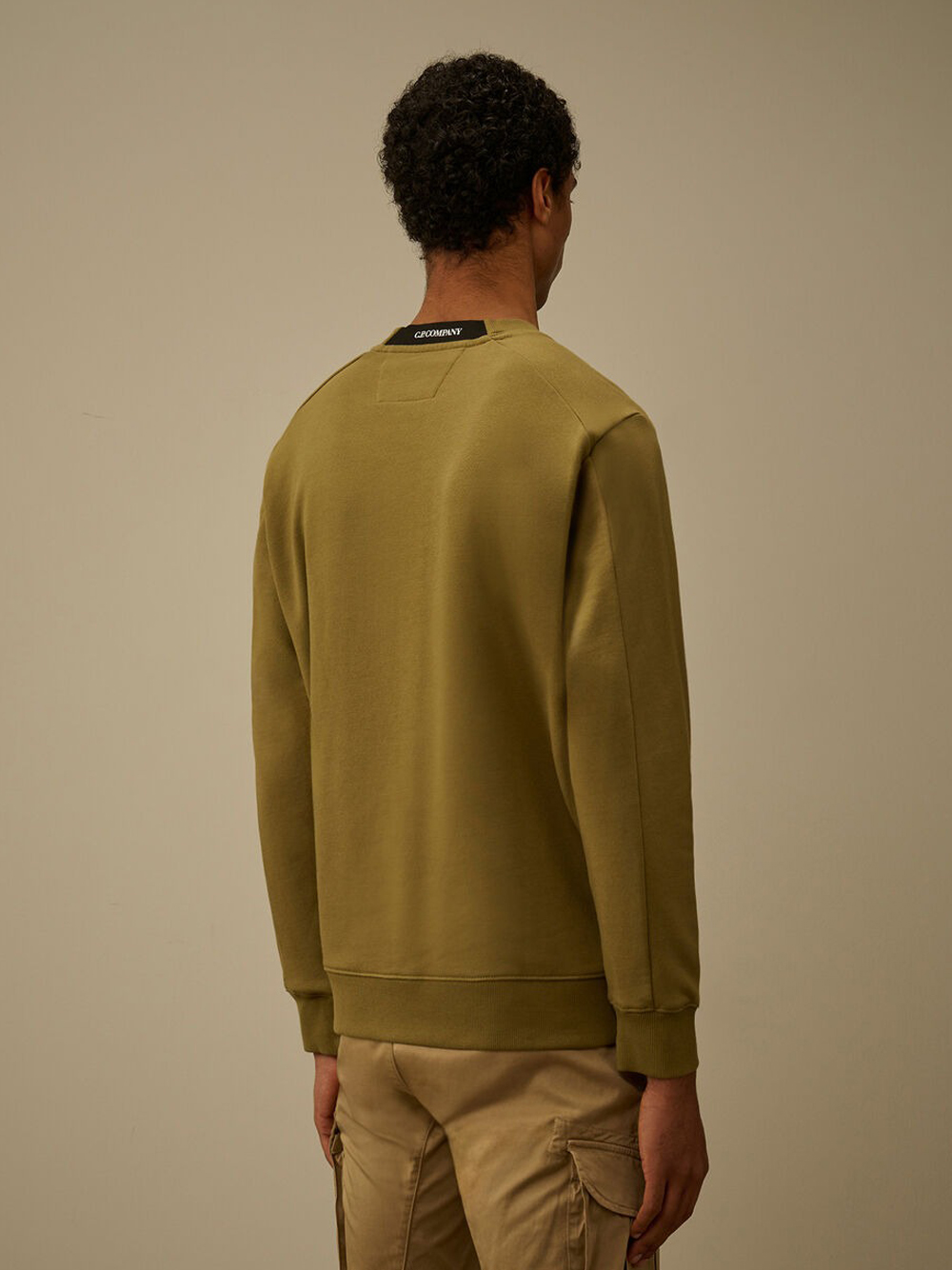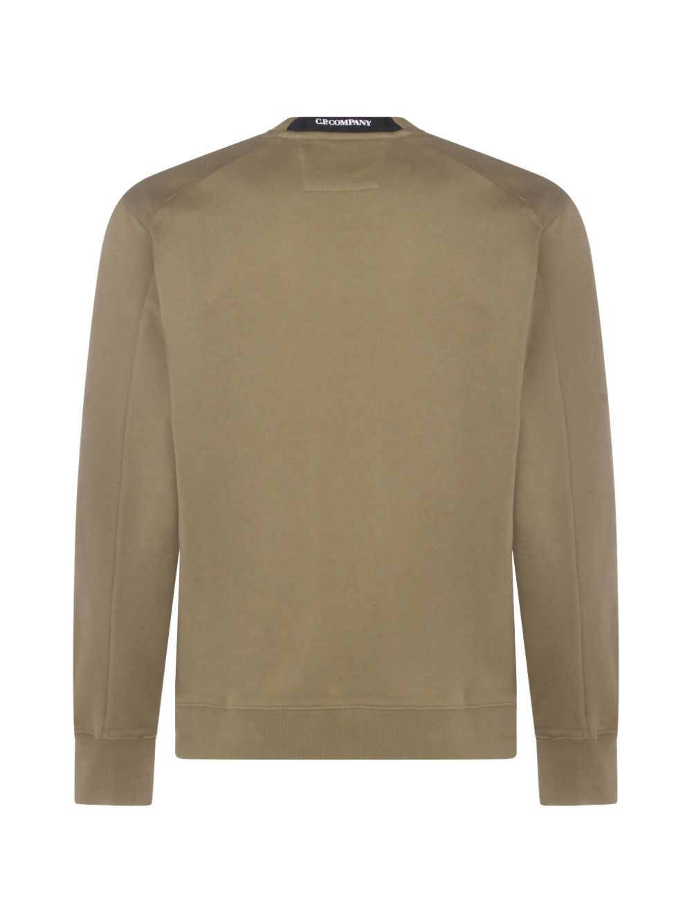 Felpa verde Diagonal Raised Fleece di C.P.Company in cotone con girocollo, dettaglio Lens, taschino laterale su manica e orlo dritto.