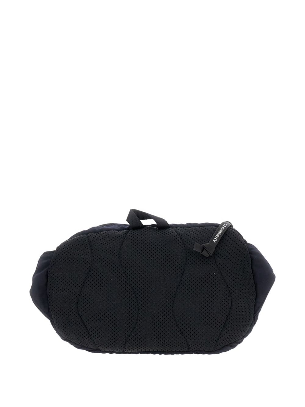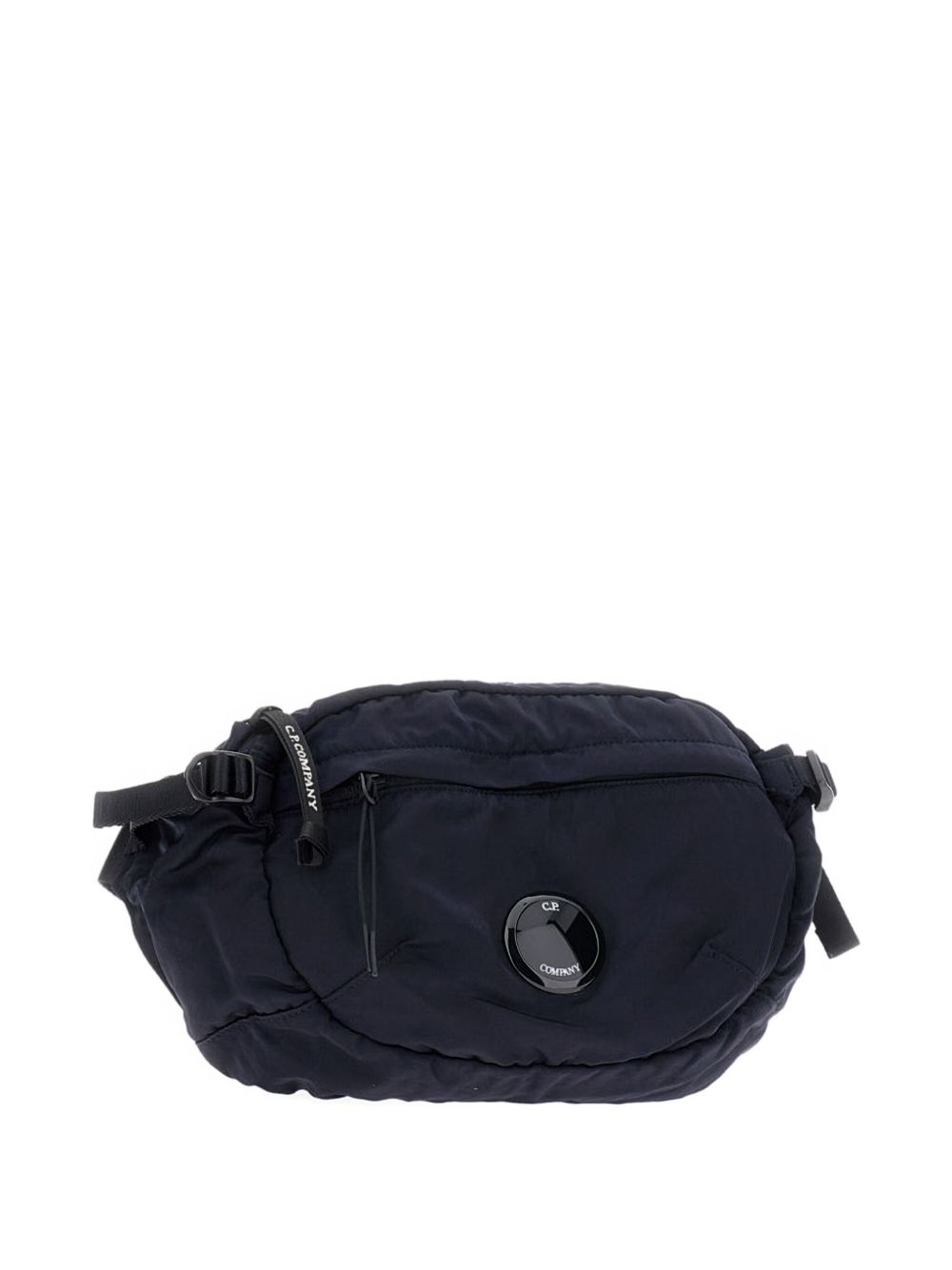 Marsupio total eclipse di C.P. Company in nylon con tracolla regolabile, chiusura posteriore con clip metallica, multitasca e lente C.P. frontale.