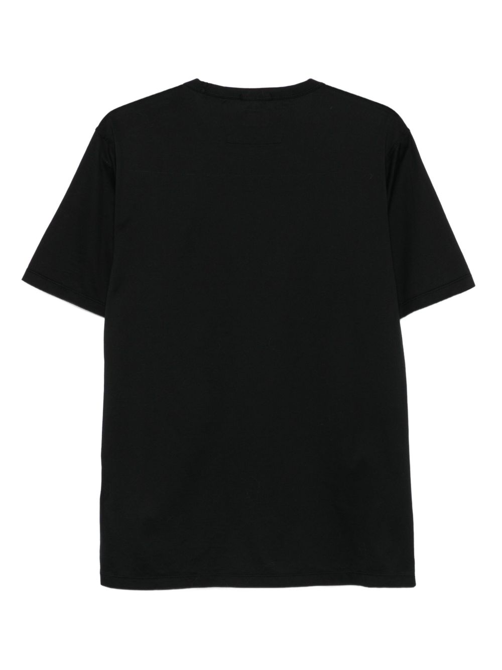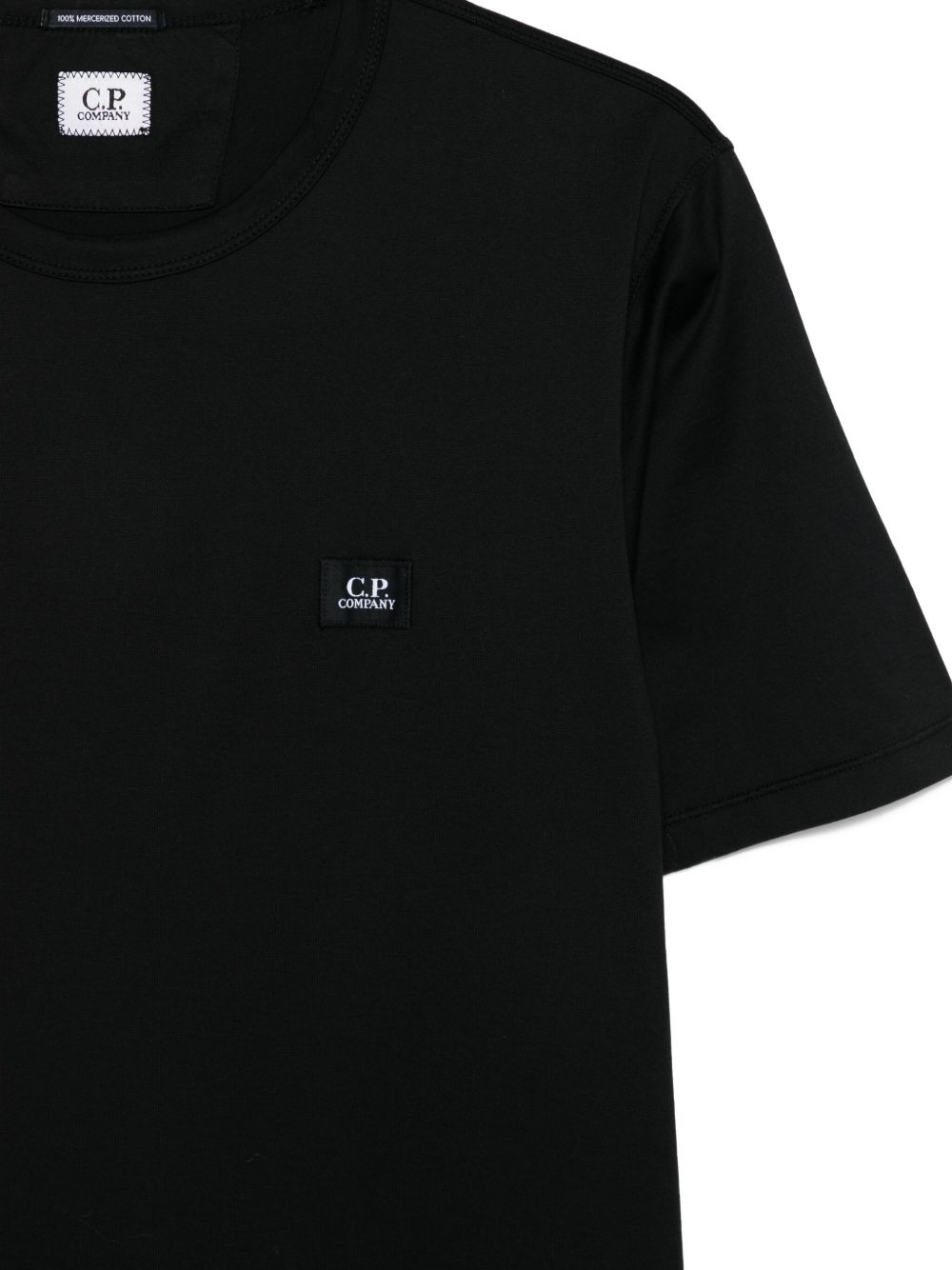 T-shirt nera Mercerized Light Jersey di C.P. Company in cotone con girocollo, maniche corte, logo sul petto e orlo dritto.