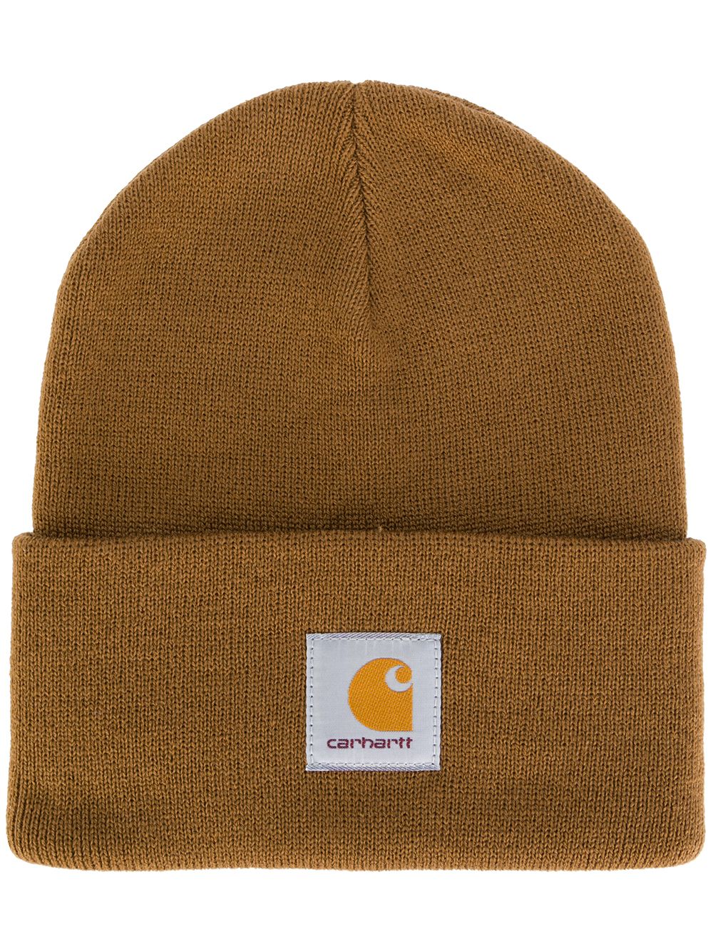 Cappello marrone Carhartt Wip con risvolto e logo applicato frontalmente.