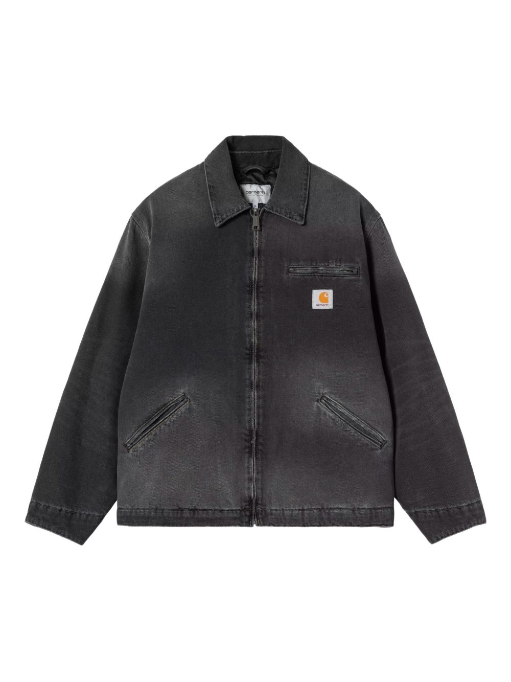 Giacca nera OG Detroit di Carhartt Wip in cotone con colletto classico in cordura, chiusura frontale con zip, tasche laterali con zip, tasca sul petto con zip e applicazione con logo.