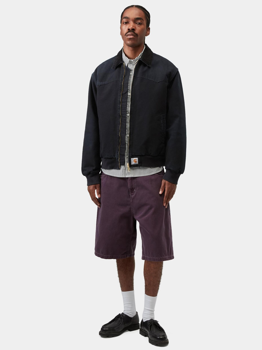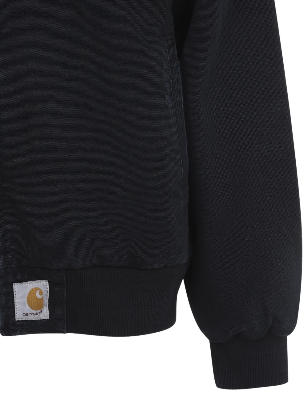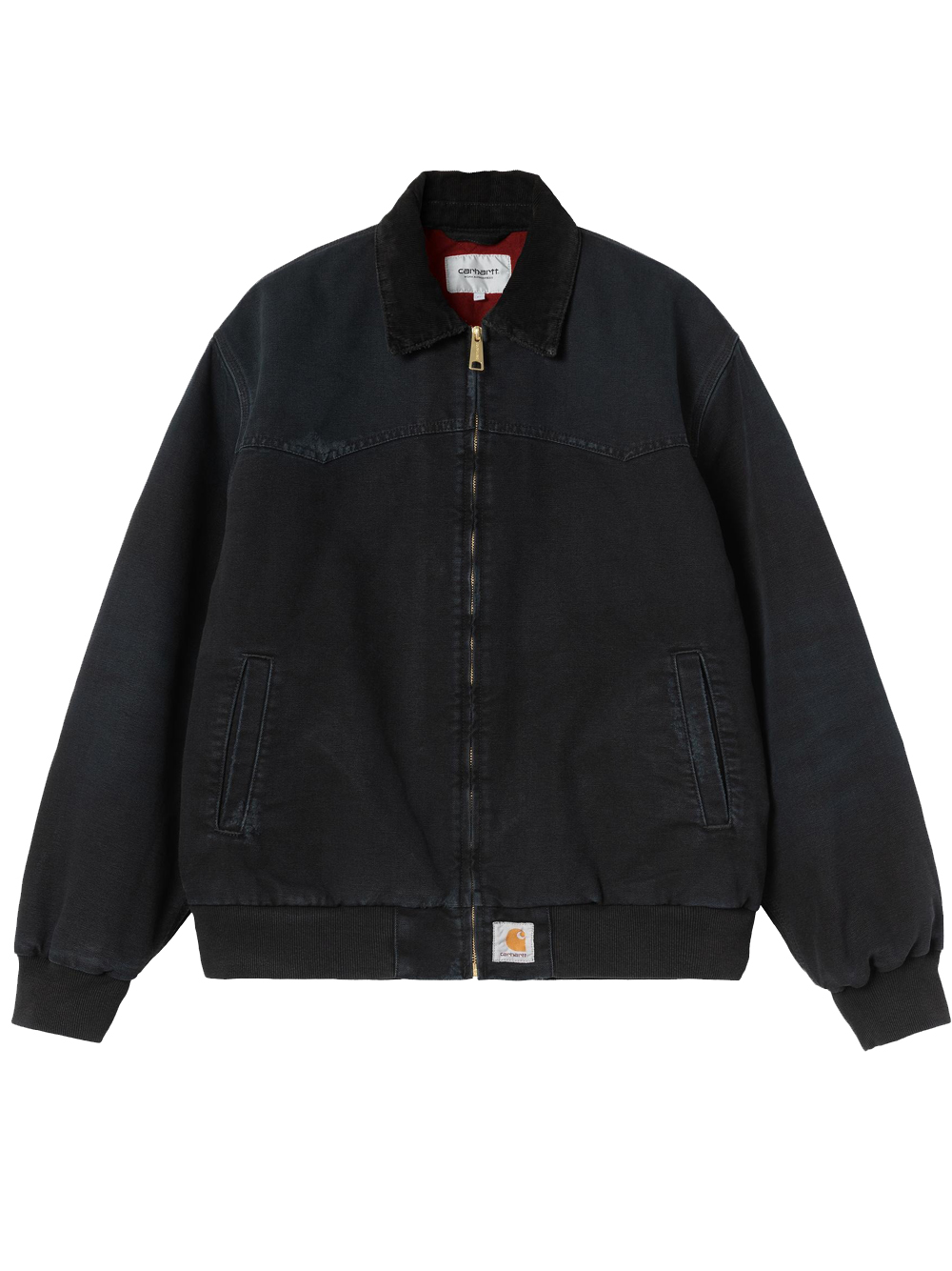 Giacca nera OG Santa Fe di Carhartt Wip in cotone con colletto classico in cordura, chiusura frontale con zip, tasche laterali, applicazione con logo e orlo e polsini elasticizzati.