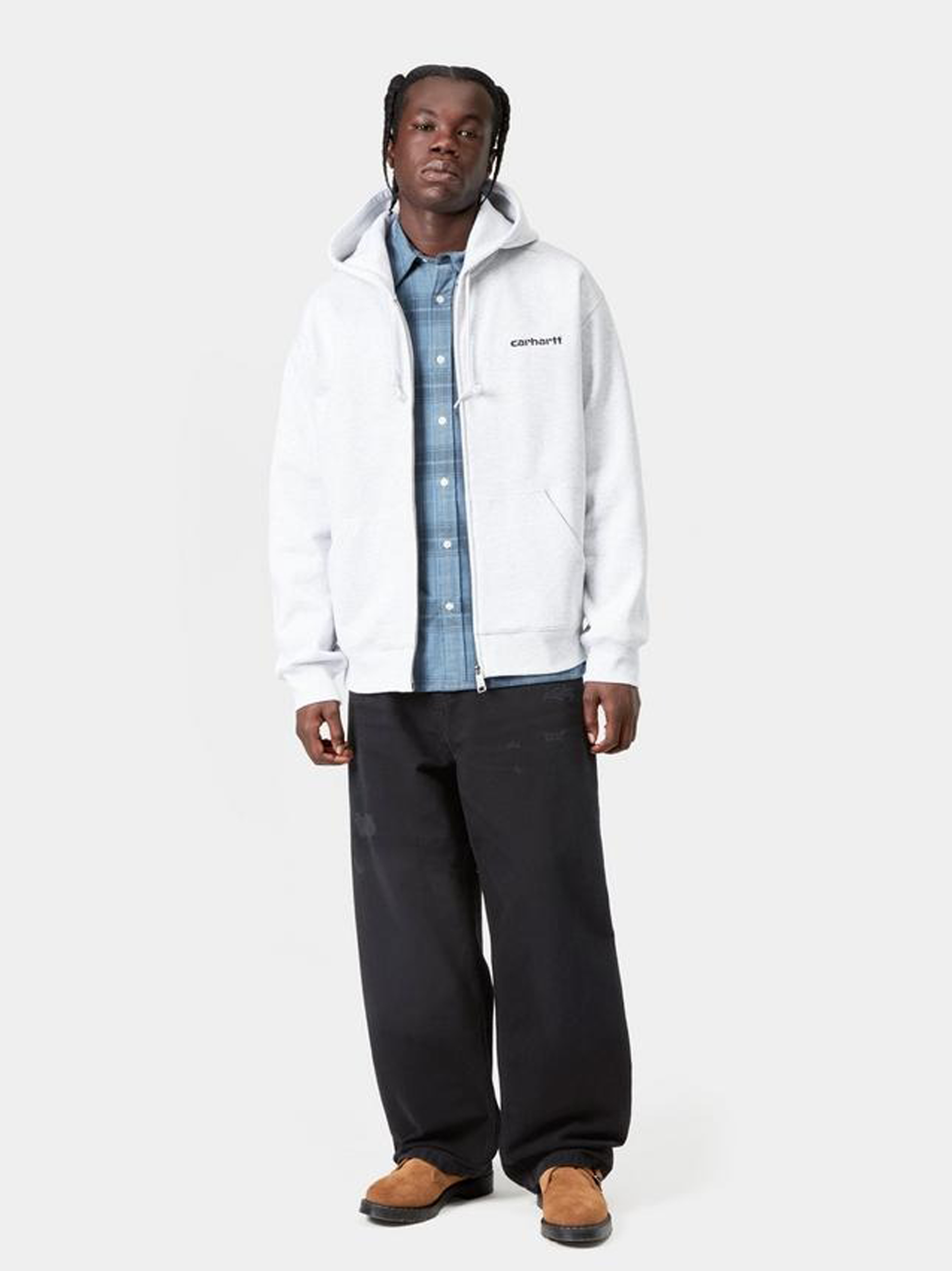 Jeans neri da uomo Brandon di Carhartt Wip in cotone con vita con passanti, chiusura frontale con bottone e zip, design 5 tasche e orlo dritto.