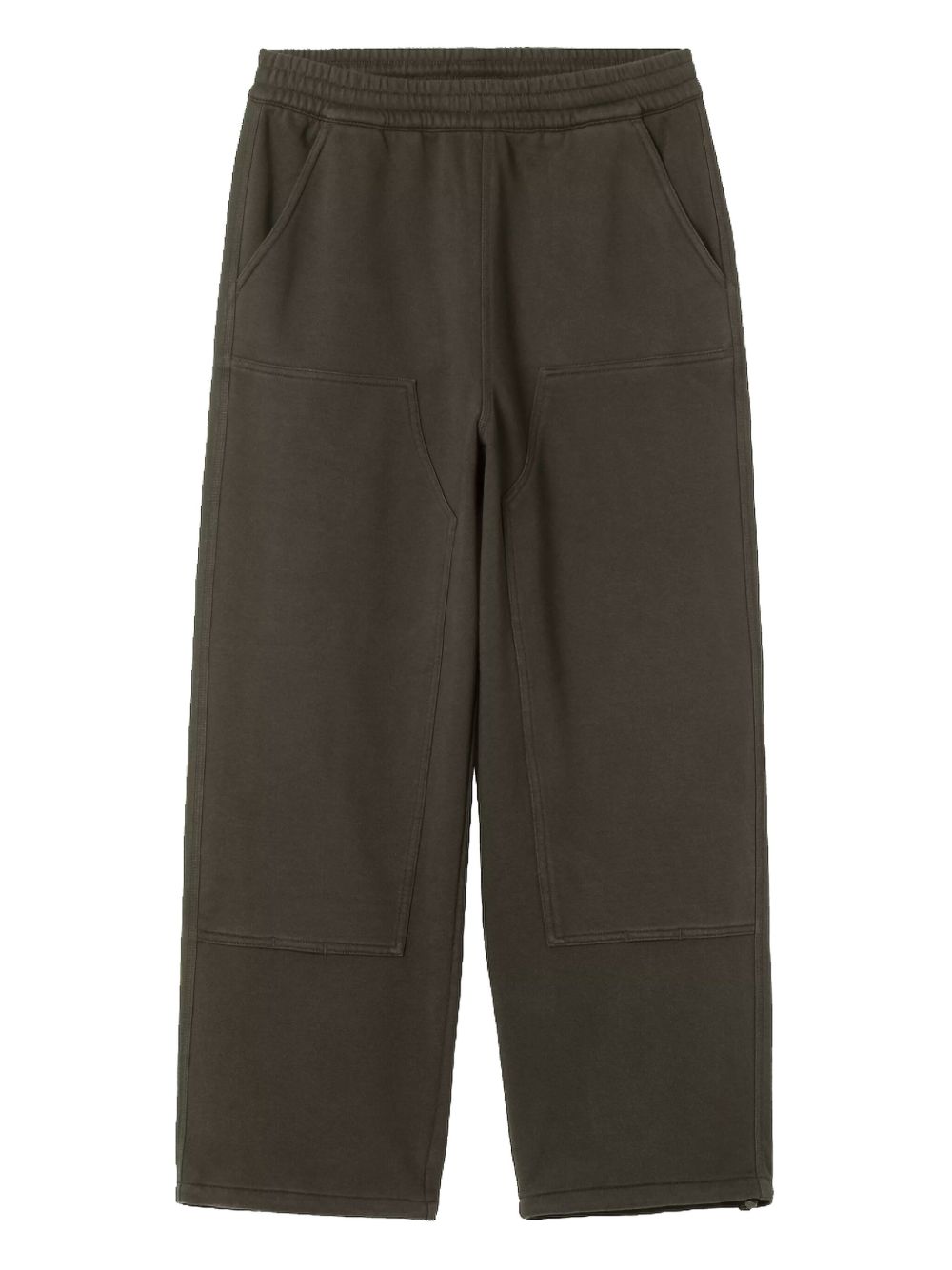 Pantaloni verde oliva Double Knee in tuta di Carhartt WIP in cotone con vita elasticizzata con coulisse, tasche laterali e logo ricamato.