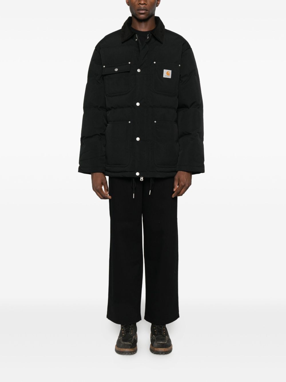 Jeans neri da uomo Holden di Carhartt Wip in cotone con vita con passanti, chiusura frontale con bottone e zip, dettagli carpenter e orlo dritto.