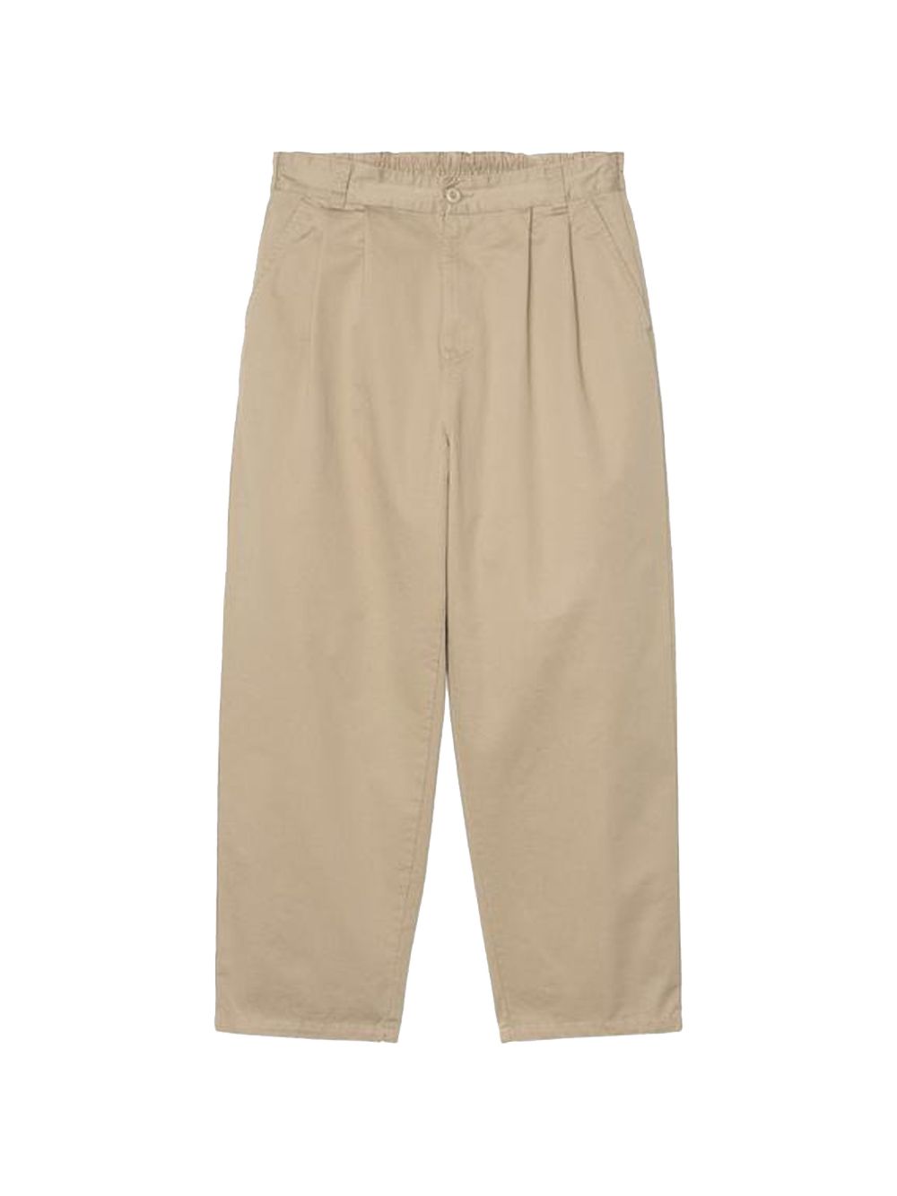 Pantaloni beige foglia Marv di Carhartt in cotone con vita elastica con passanti, chiusura frontale con bottone e zip, tasche laterali, tasche posteriori con bottone e etichetta con logo.