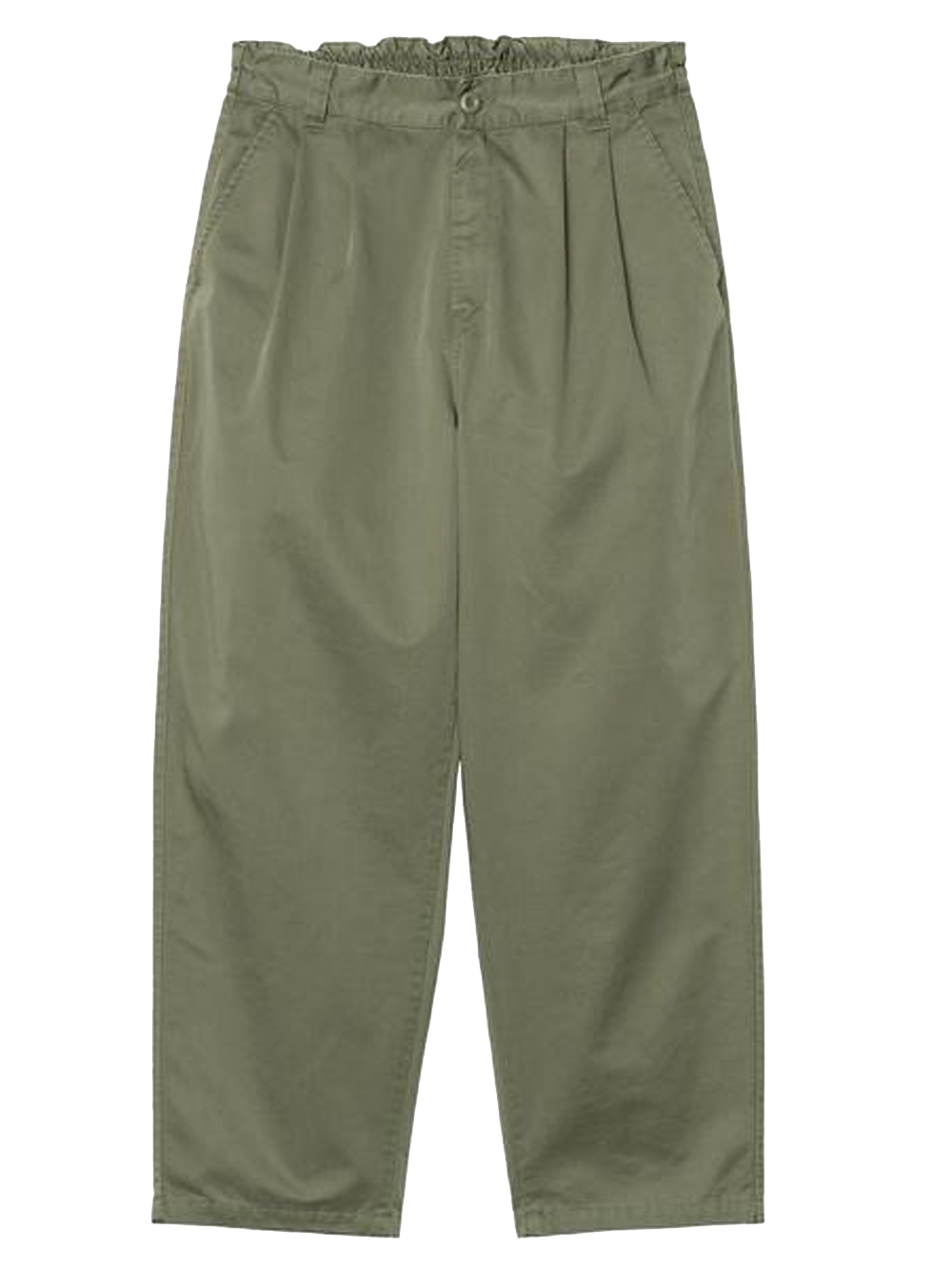 Pantaloni verde foglia Marv di Carhartt in cotone con vita elastica con passanti, chiusura frontale con bottone e zip, tasche laterali, tasche posteriori con bottone e etichetta con logo.