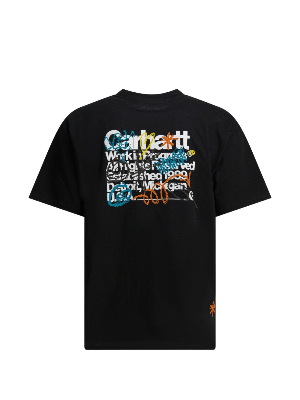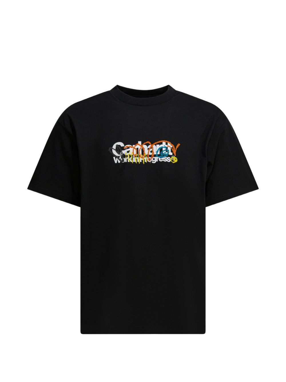T-shirt nera Primary di Carhartt Wip in cotone con girocollo, stampa frontale e orlo dritto.