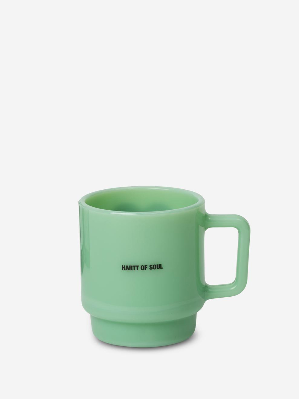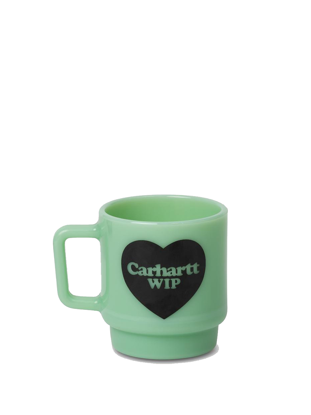 Heart Glass Mug è una tazza impilabile in vetro. Sui lati è impreziosita da stampe grafiche.