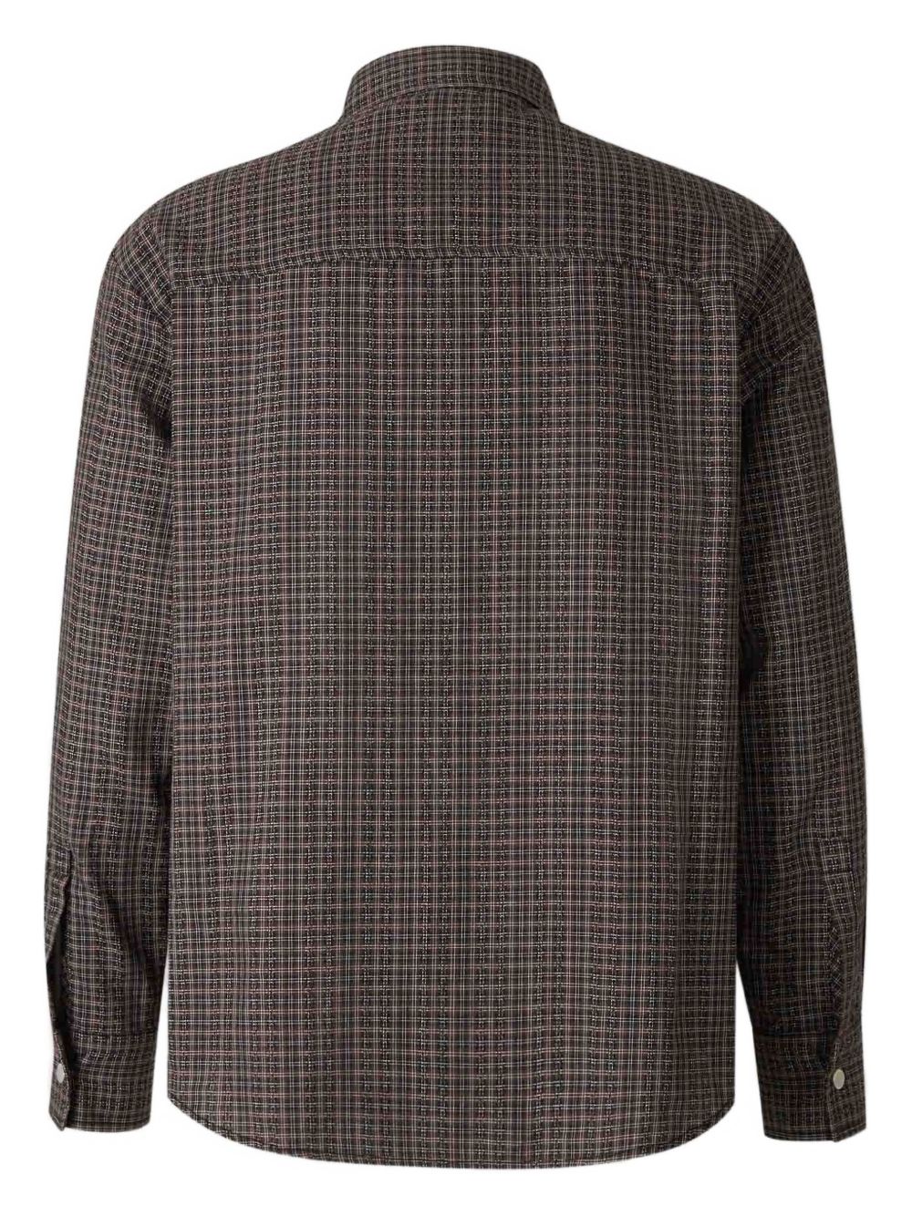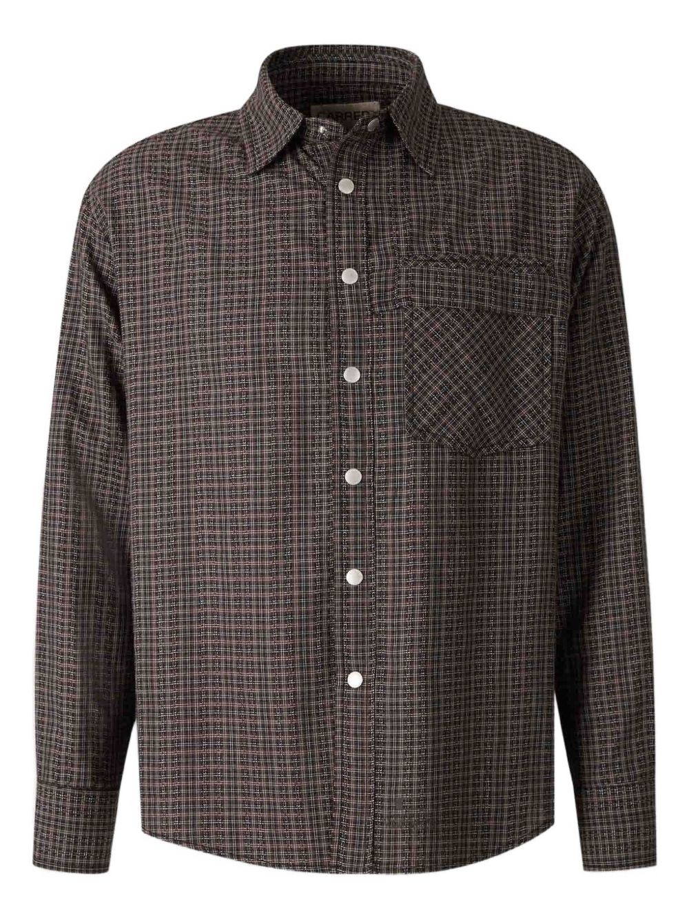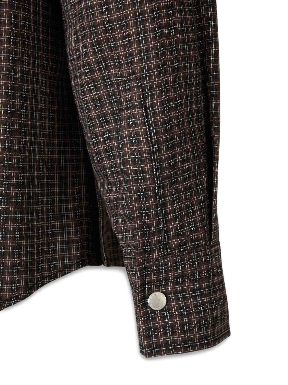 Camicia marrone a scacchi Beck Snap di Carrer in cotone con chiusura frontale con bottoni a pressione, tasca con patta, polsini con bottoni a pressione e orlo curvo.