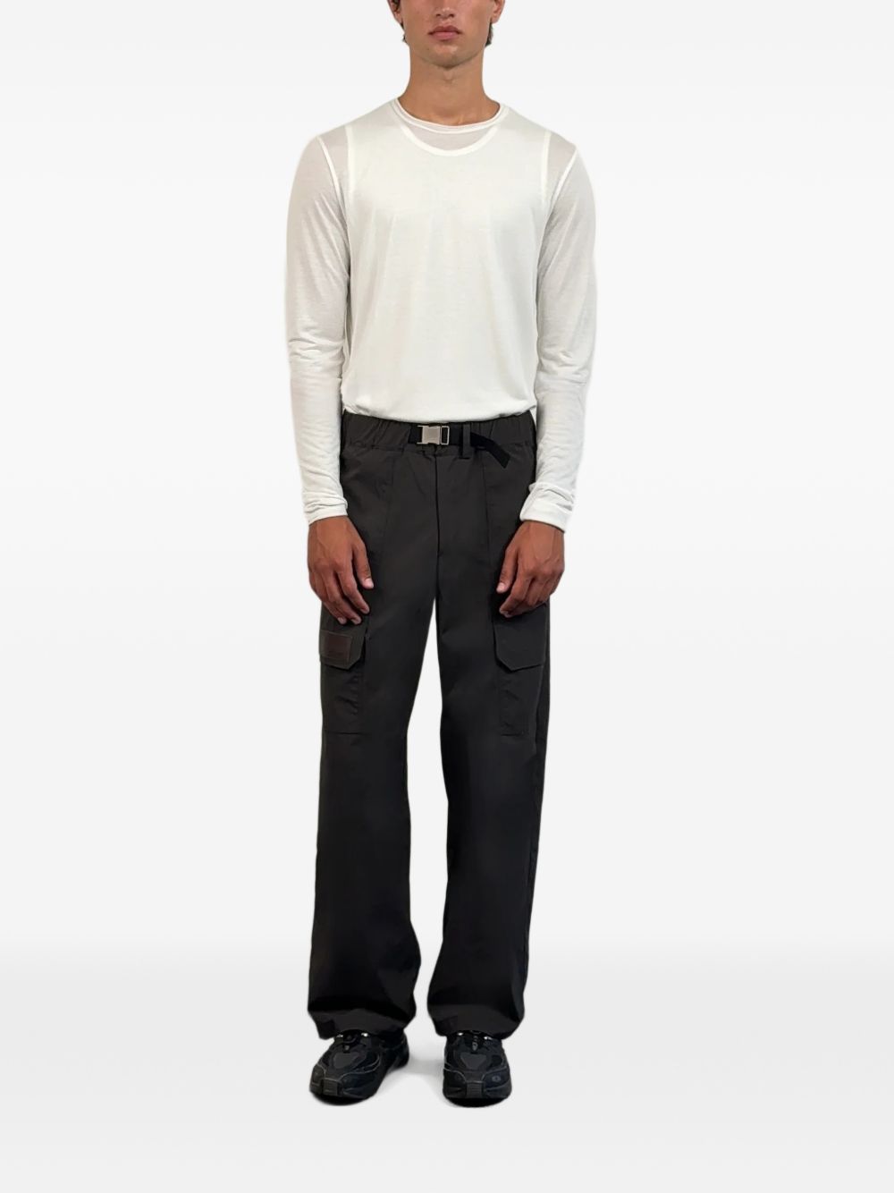 Pantaloni grigi Arden di Carrer in lyocell con vita elasticizzata, chiusura con clip, tasche lateralia filetto, tasca posteriore con patta e orlo dritto.