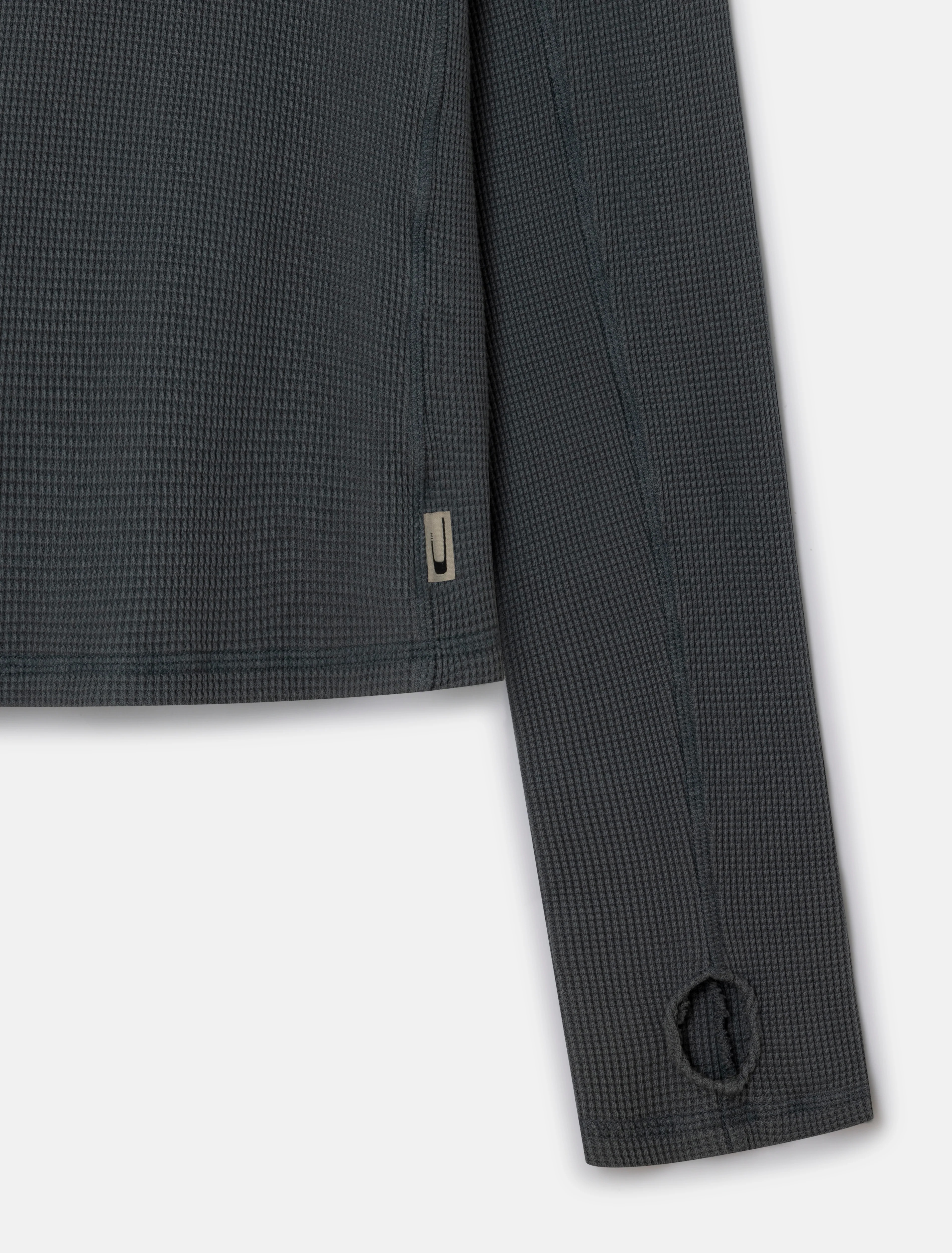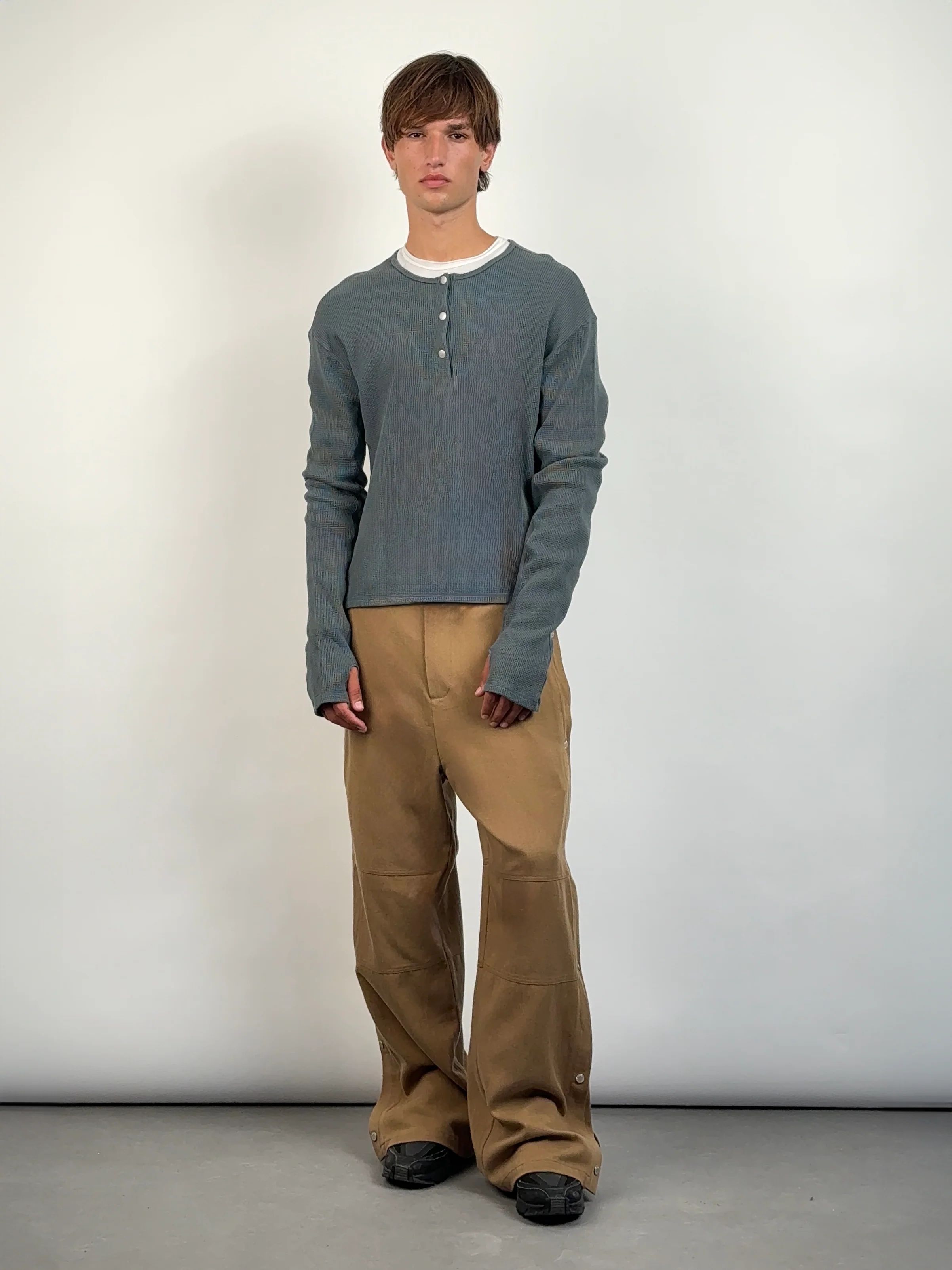 T-shirt grigia Lis Henley di Carrer in cotone con girocollo, apertura frontale a tre bottoni, trama a nido d'api, maniche lunghe e orlo dritto.