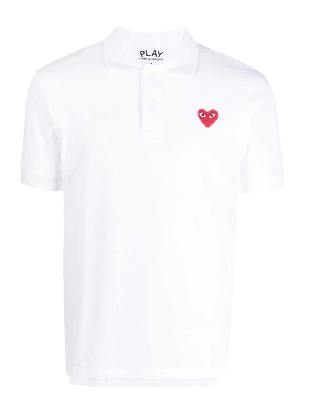 Polo bianca di Comme Des Garçons Play in cotone con colletto classico, chiusura con bottoni, logo ricamato sul petto e orlo dritto.