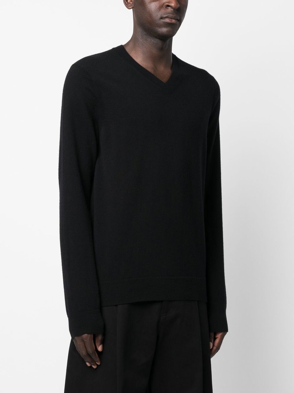 Pullover black di Comme Des Garçons Shirt in lana con a V, polsini e orlo a coste.