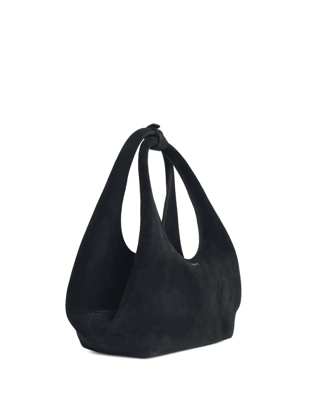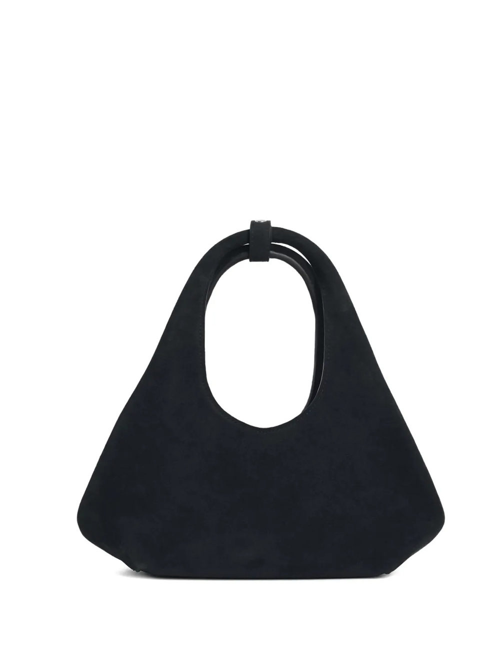 Borsa nera Folded Mini di Coperni in pelle di vitello con logo nella parte posteriore, chiusura superiore con zip, manici tondi e scomparto unico.