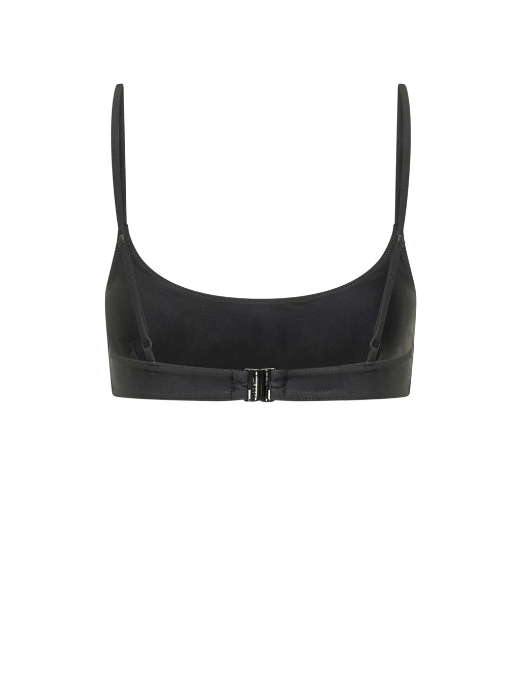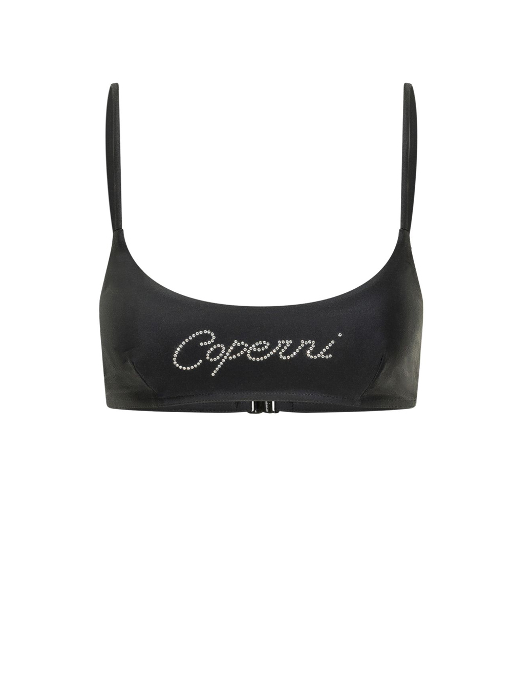 Top bikini nero Crystal Logo di Coperni in poliammide con bretelle sottili, logo applicato e chiusura posteriore.