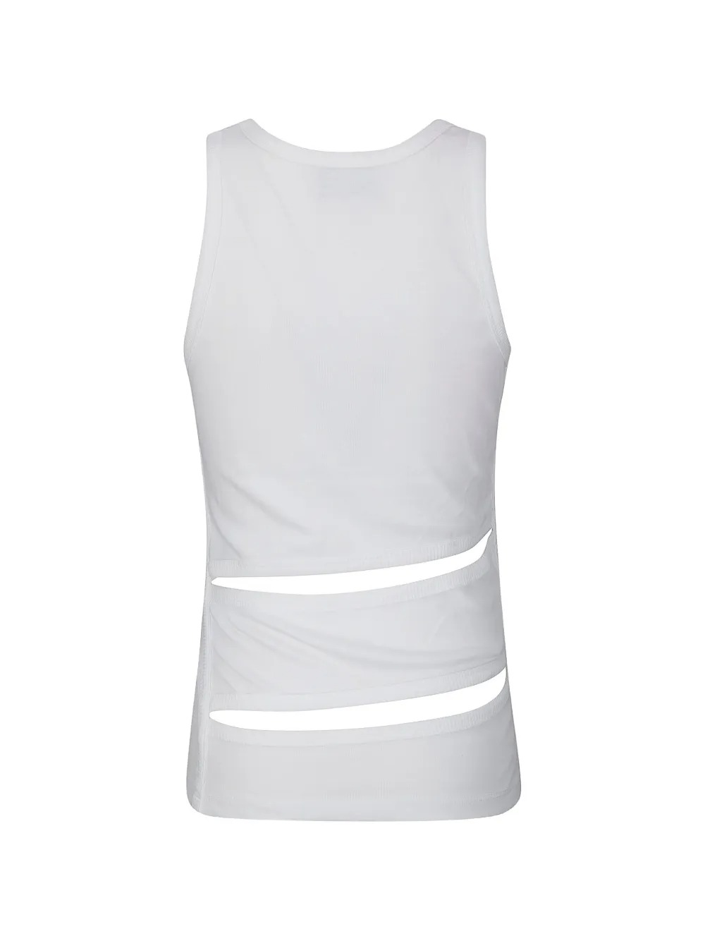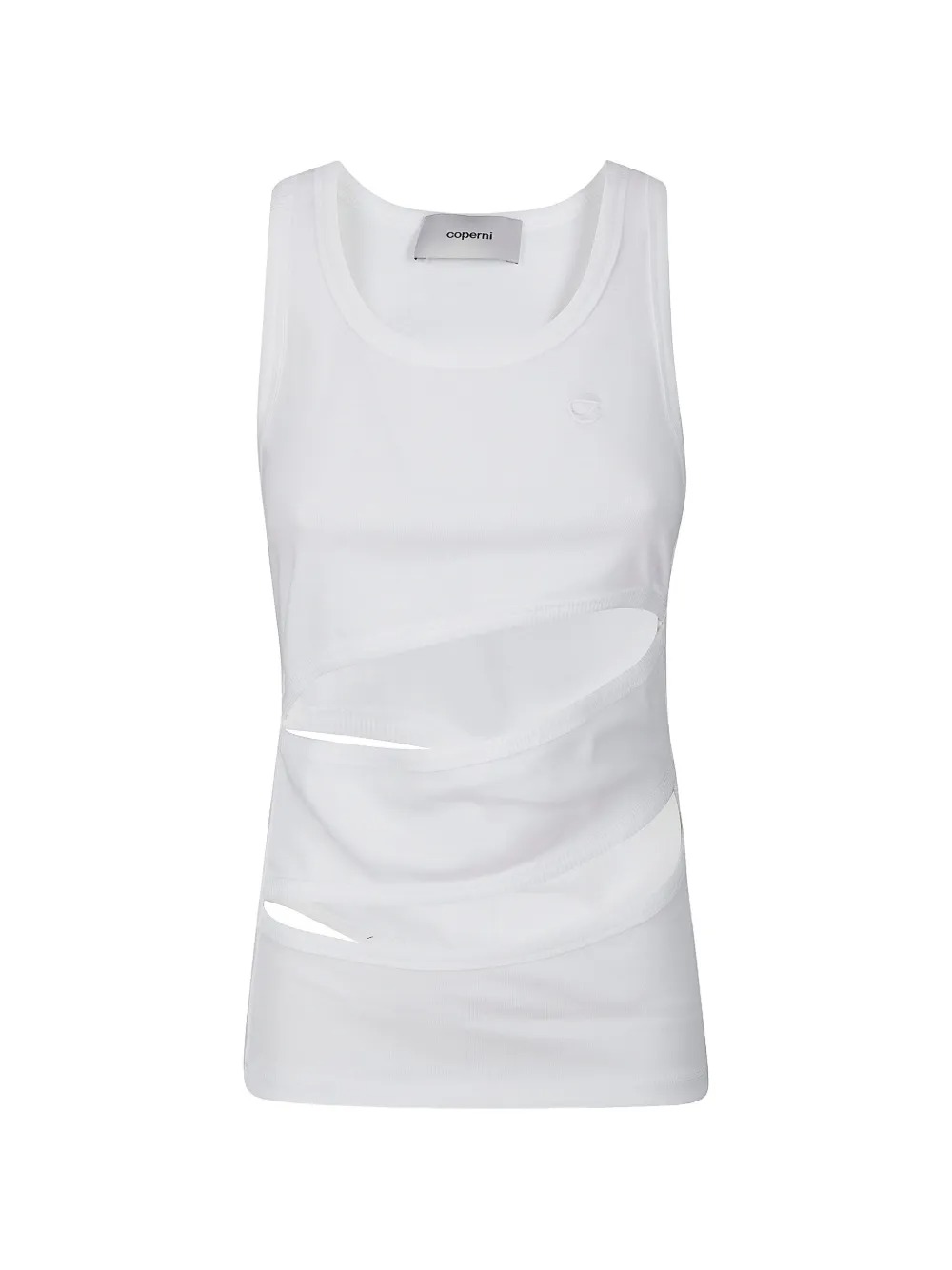 Top bianco Spiral di Coperni in cotone con design a coste, dettagli cut-out asimmetricigirocollo