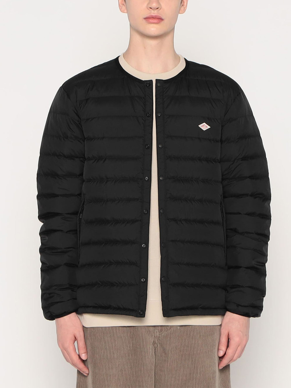 Giacca crewneck Inner Down di Danton in nylon con scollo rotondo con chiusura frontale con bottoni a pressione e tasche laterali.