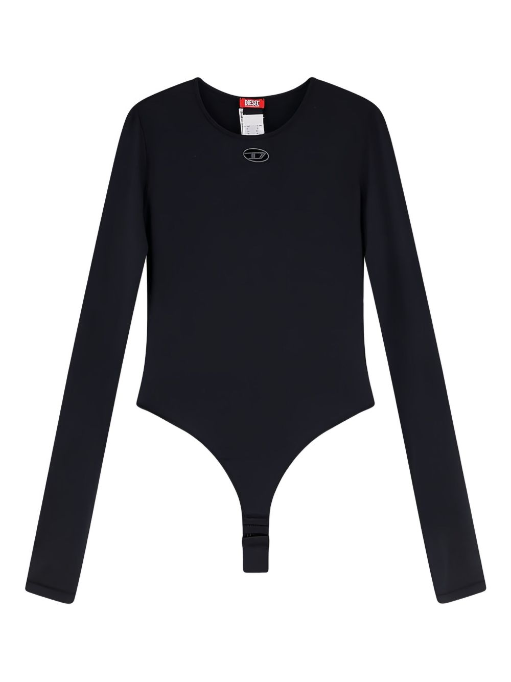 Body nero Angelina Utlt di Diesel in poliammide con scollo rotondo, caratteristico dettaglio con logo e maniche lunghe.