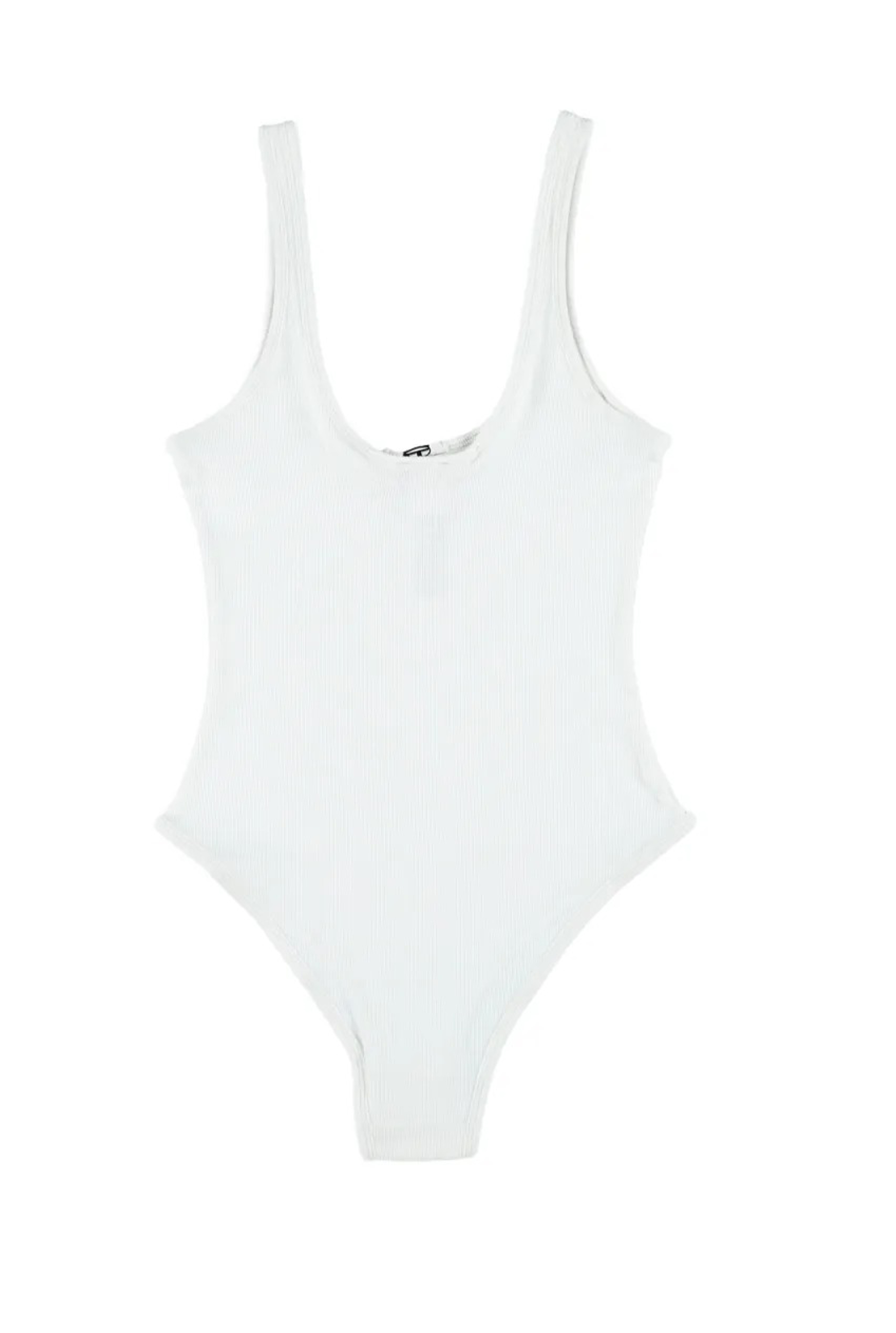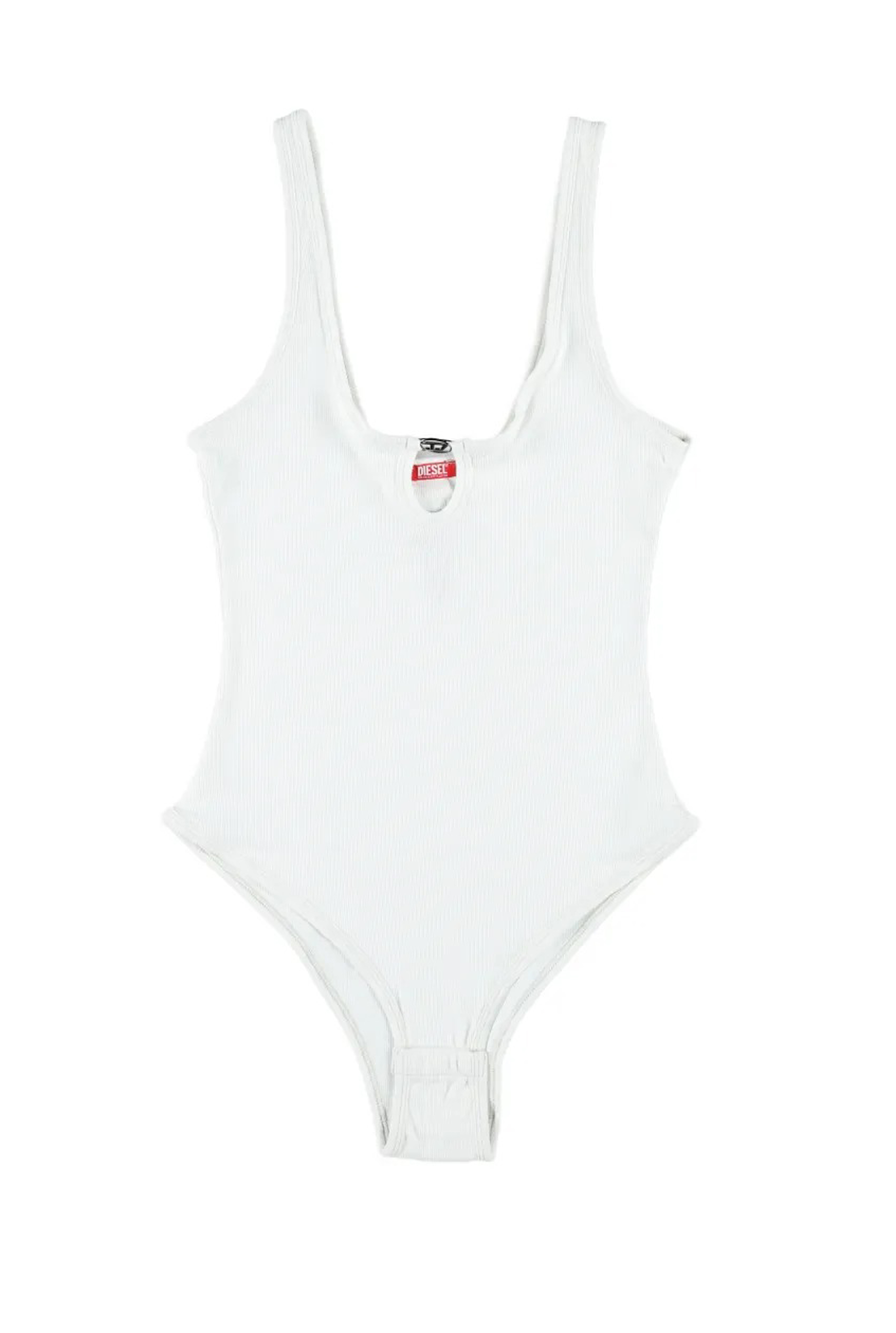 Body bianco Maura Dnm di Diesel in cotone con trama a coste, dettaglio con apertura a goccia e applicazione con logo.