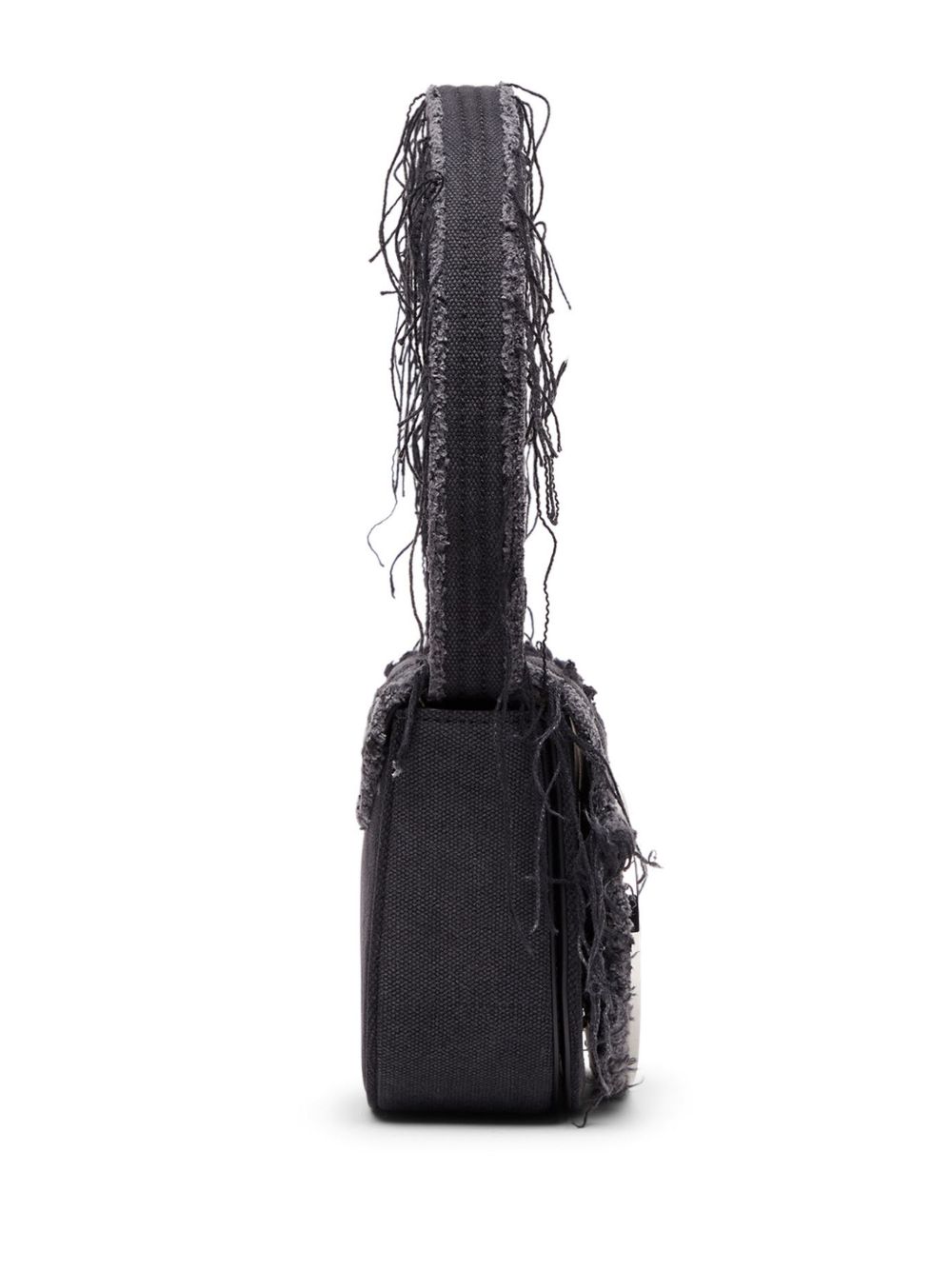 Borsa a spalla nera 1DR di Diesel in cotone con manico, patta magnetica, tracolla rimovibile e placca logo "D" in metallo .