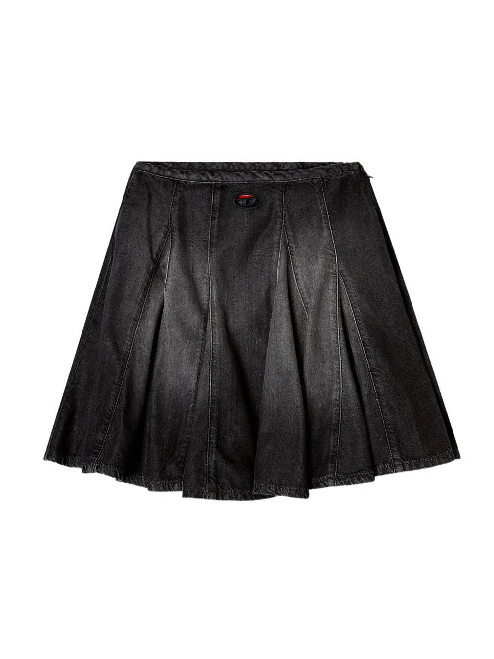 Gonna grigi De Spiki S di Diese in cotone con plisse, design a inserti, dettaglio logo e chiusura con zip nascosta.