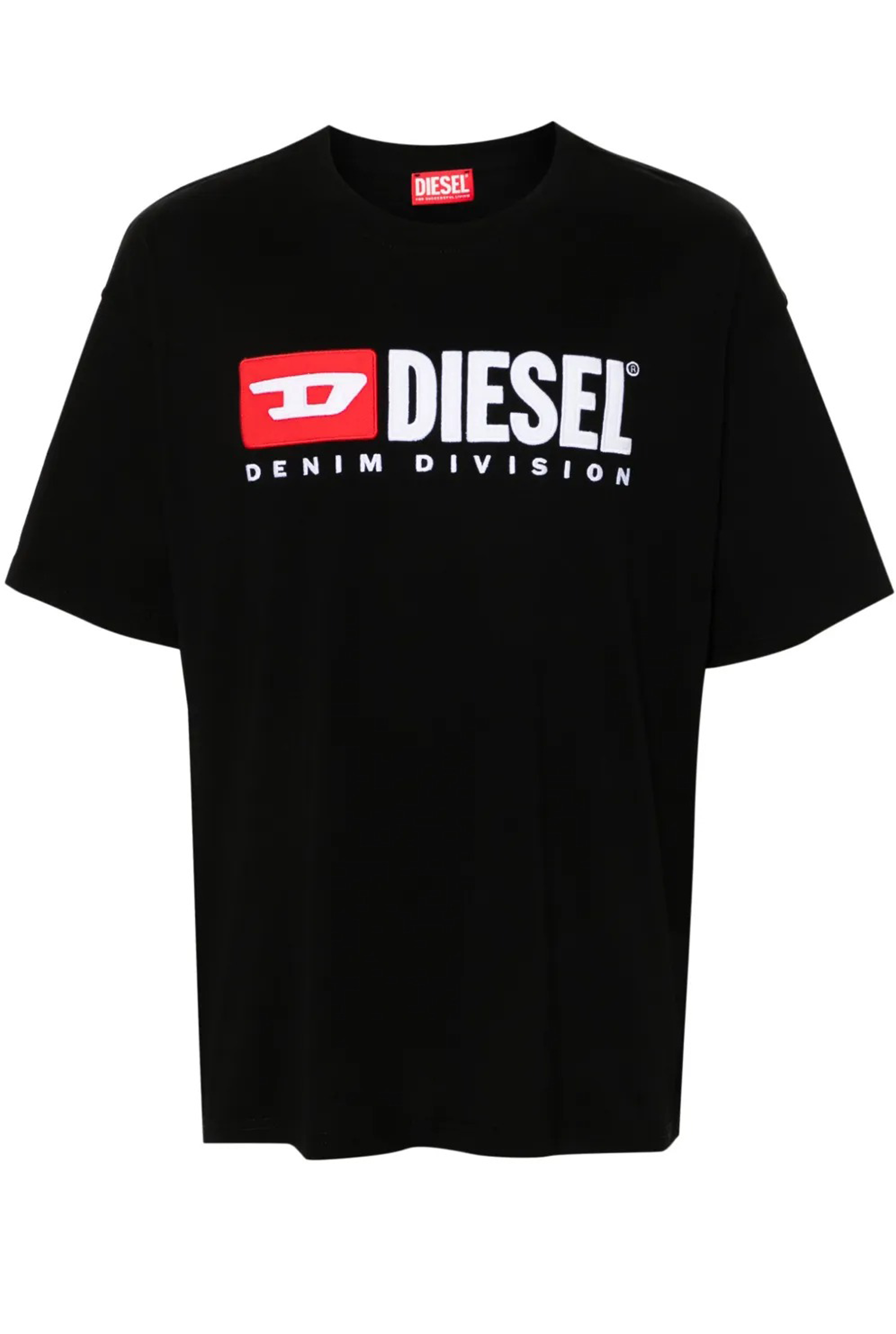 T-shirt nera di Diesel in cotone con stampa logo frontale, cotone, maniche corte e orlo dritto.