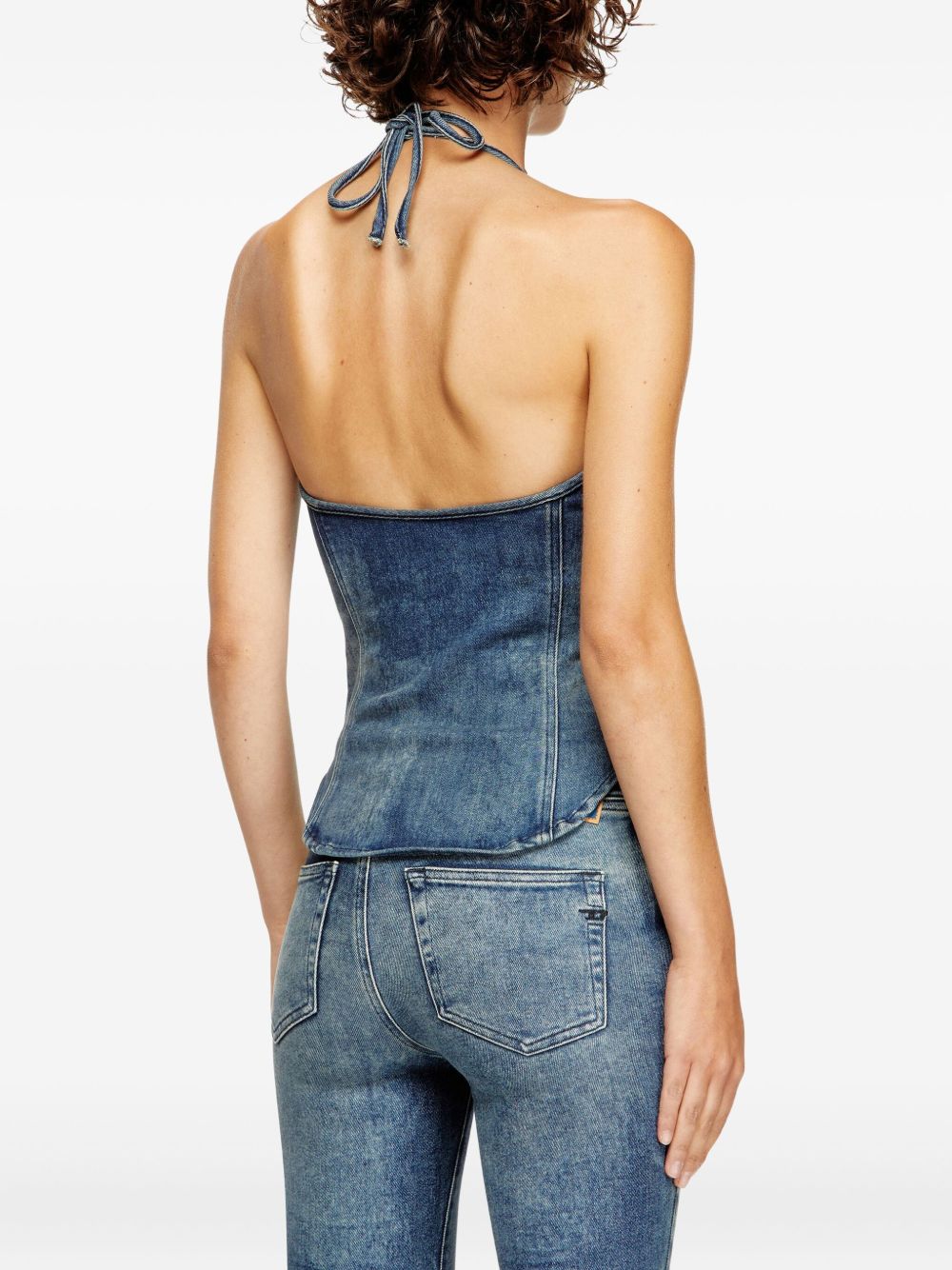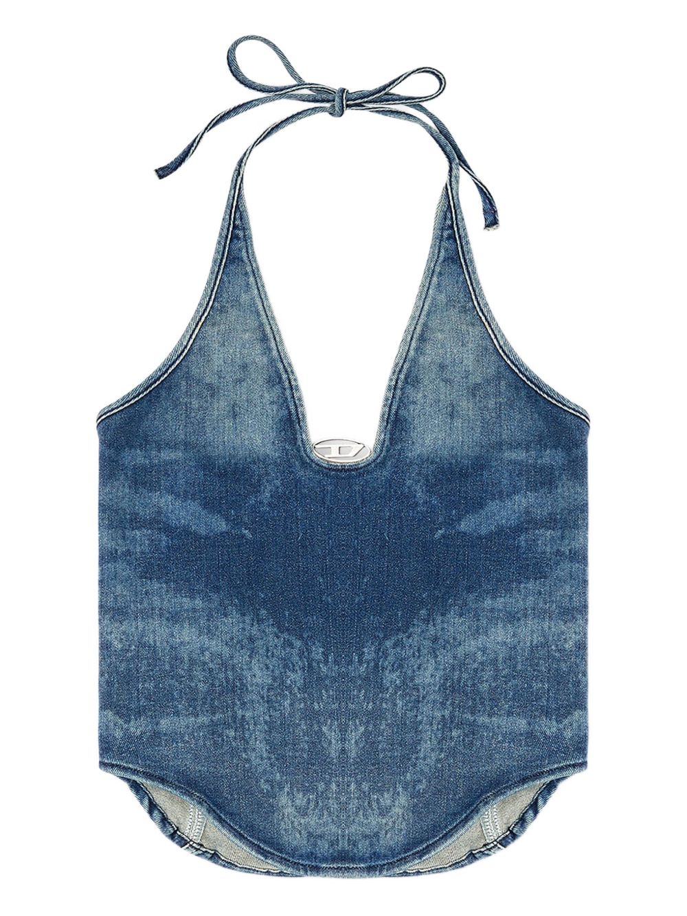 Top blu De Janice S di Diesel in cotone con scollo all'americana e orlo curvo.