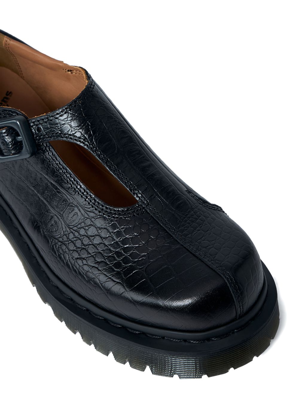 Scarpe nere Rejana Mary Jane di Dr. Martens in pelle con chiusura frontale con lacci, cuciture a contrasto e suola in gomma.
