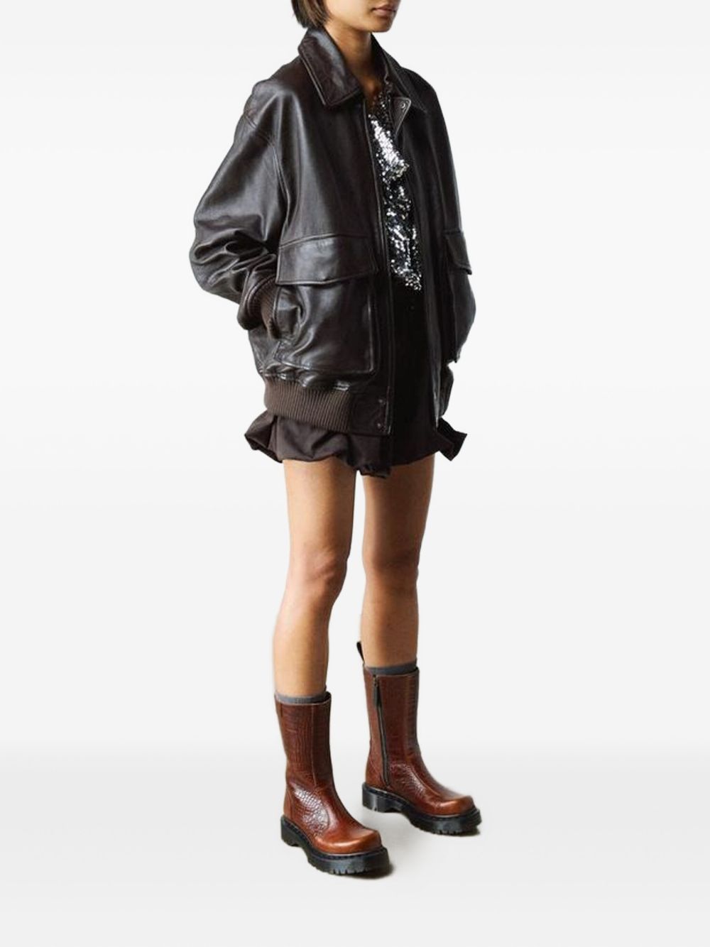 Stivali marroni Rejena di Dr. Martens in pelle con punta leggermente squadrata, chiusura con zip laterale e suola in gomma nera.